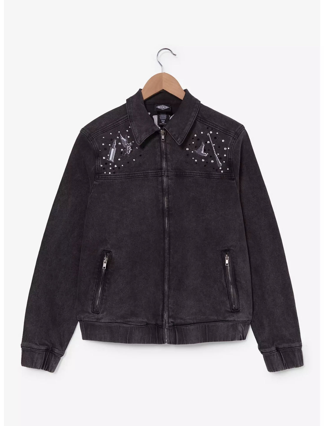 Chaqueta de mezclilla negra con pedrería Wicked Elphaba Icons para mujer