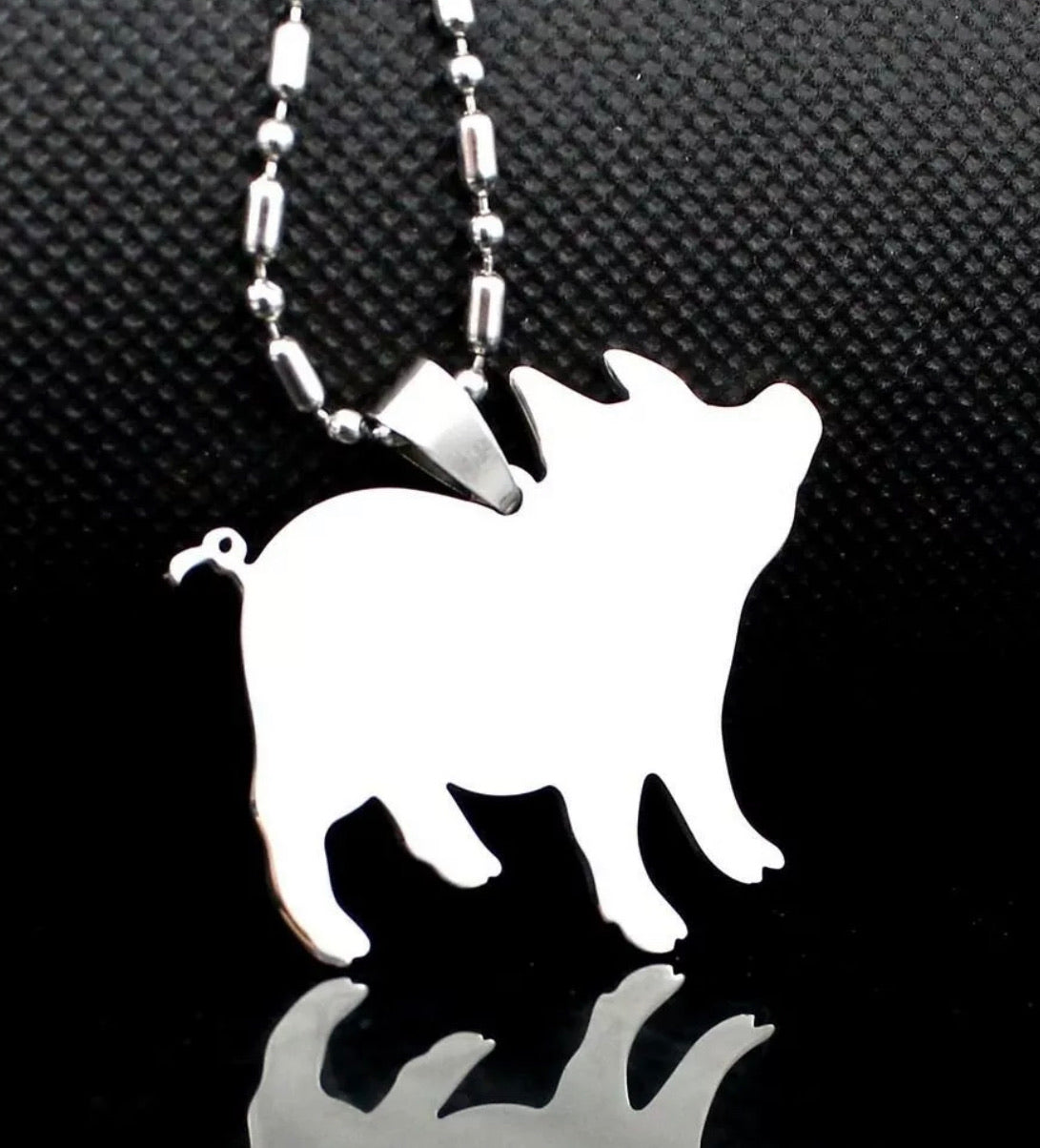 Collar Cerdito Puerquito Figura Plateada