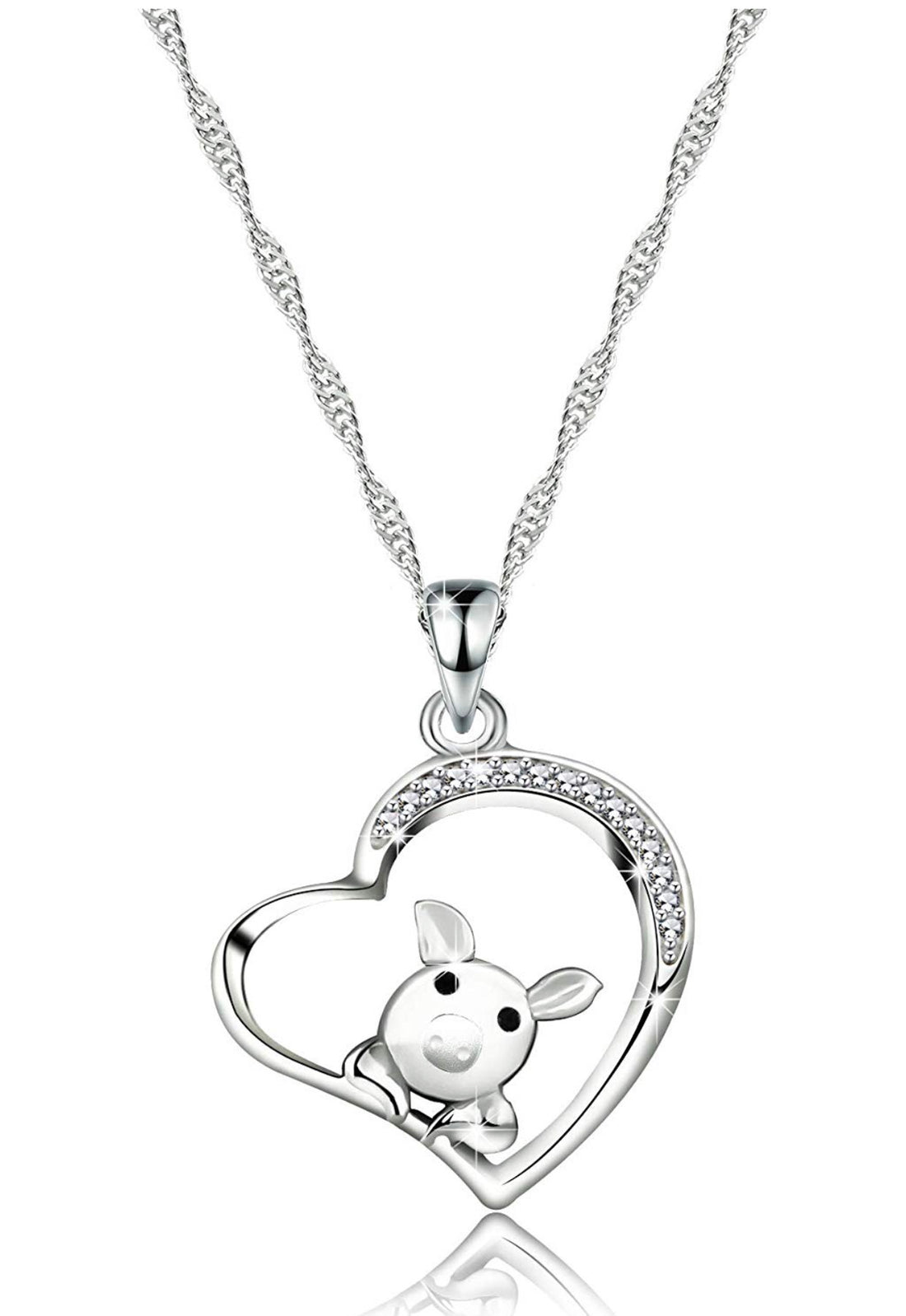 Collar Cerdito Plateado Corazón