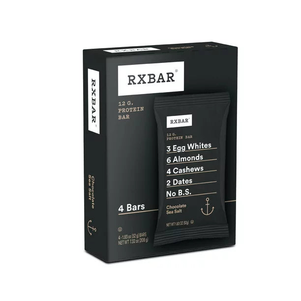 RXBAR Protein Bar, Chocolate Sea Salt, 7.32 Oz, Caja con 4 Barras
