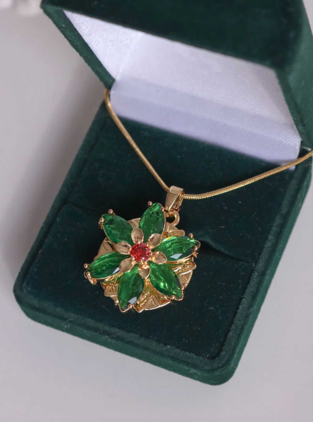 La Bella Y La Bestia Collar Gema Rosa Corazon Flor