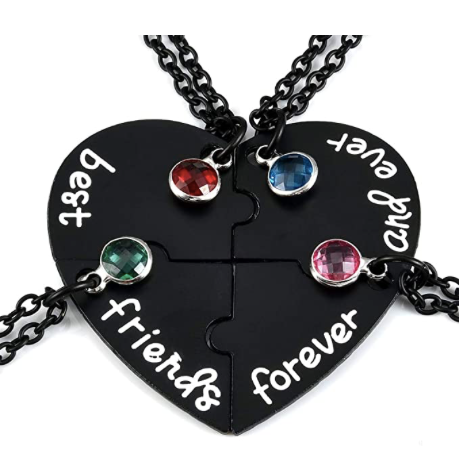 Collar Corazon Mejores Amigos 4 Piezas Negro