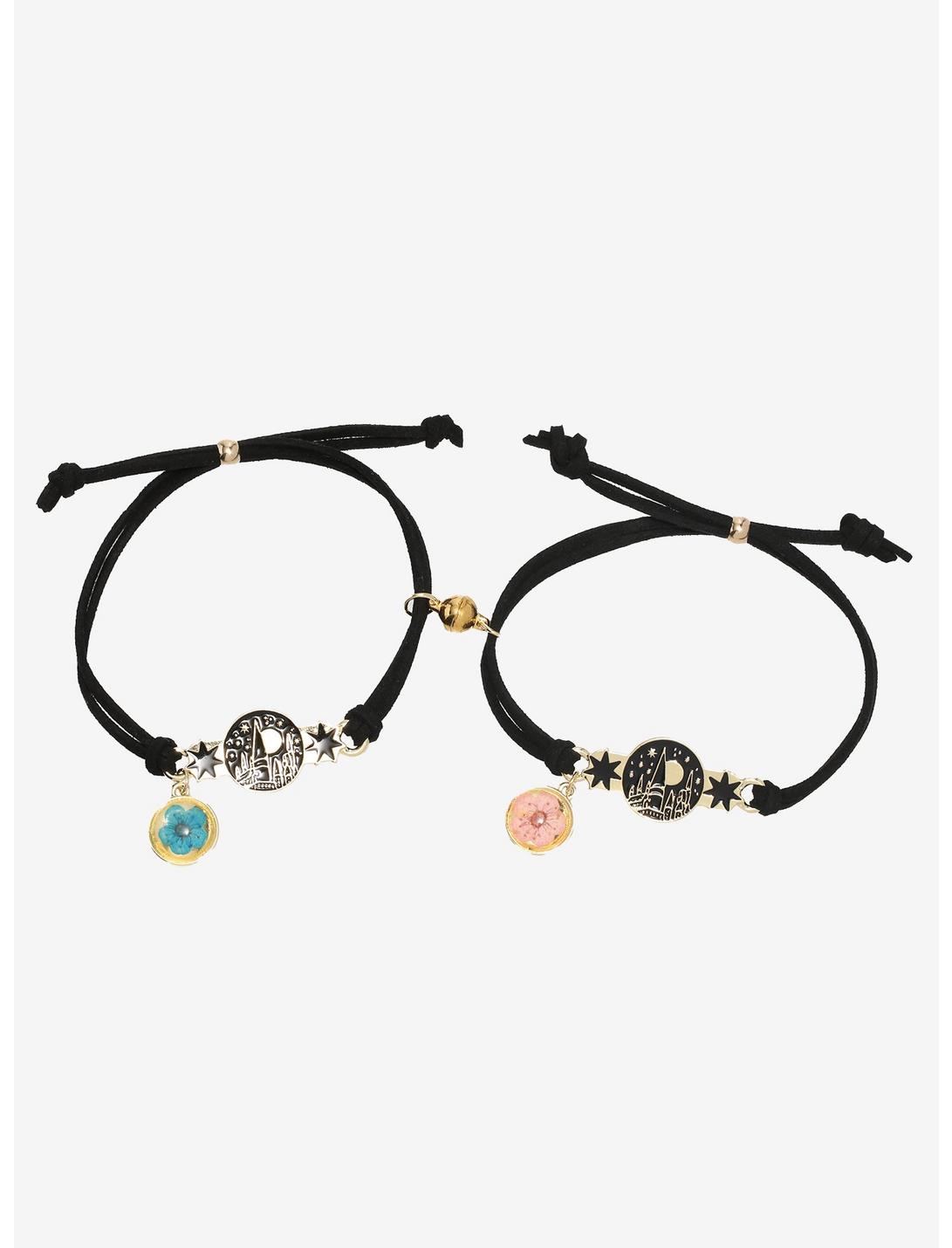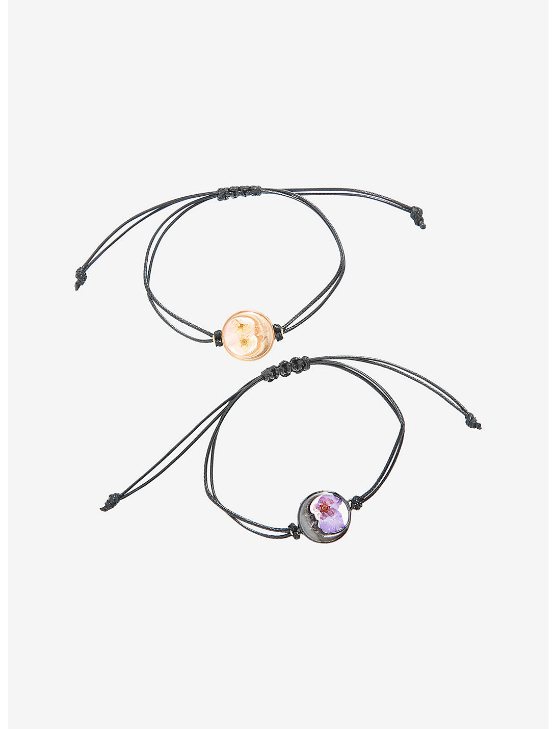 Brazalete Luna Creciente Y Flor Natural Mejores Amigas Set