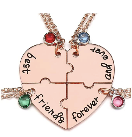 Collar Corazon Mejores Amigas 4 Piezas Dorado