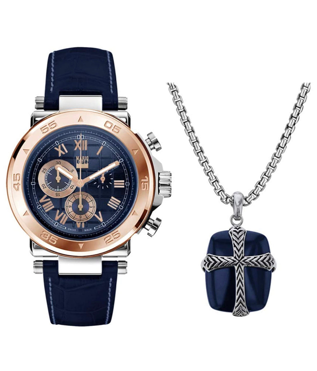 Set De Reloj Y Cadena De Cruz Para Caballero Mario Lopez Modelo 2