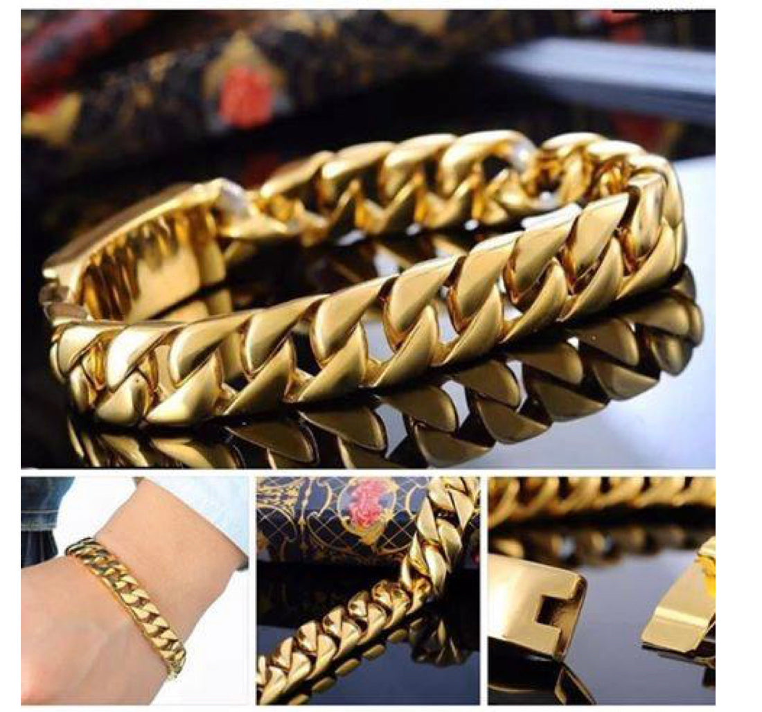 Juego Set Para Caballero Cadena Y Pulsera Dorada