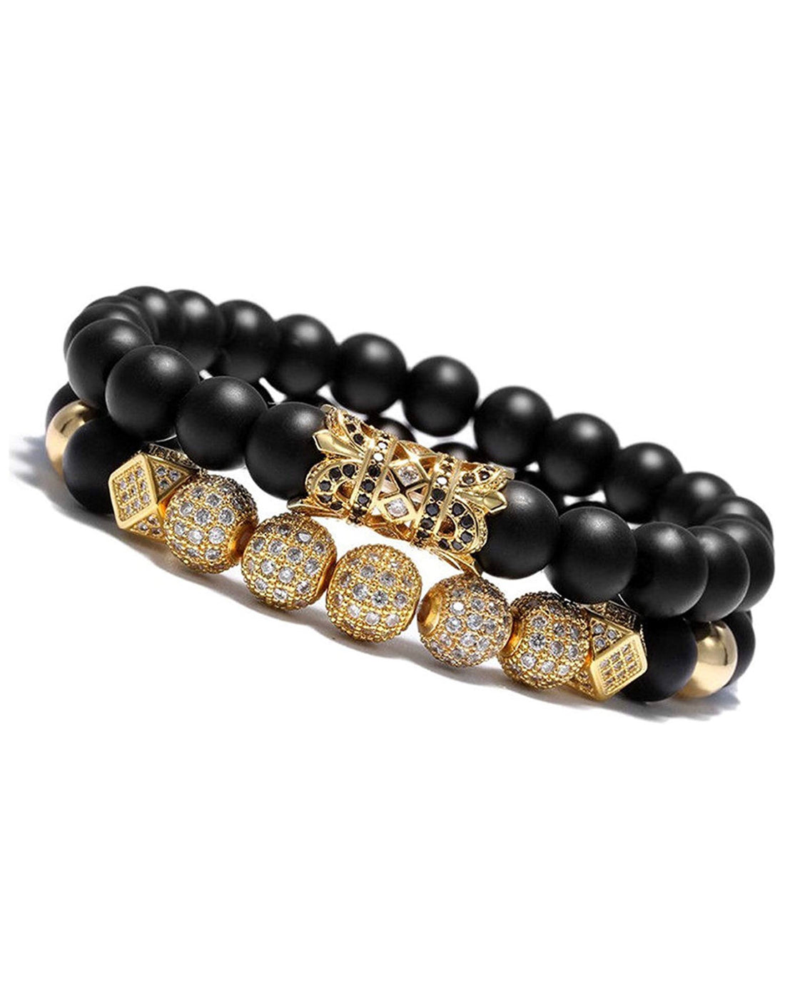Set Brazalete Piedra Onyx Dorado Negro Caballero
