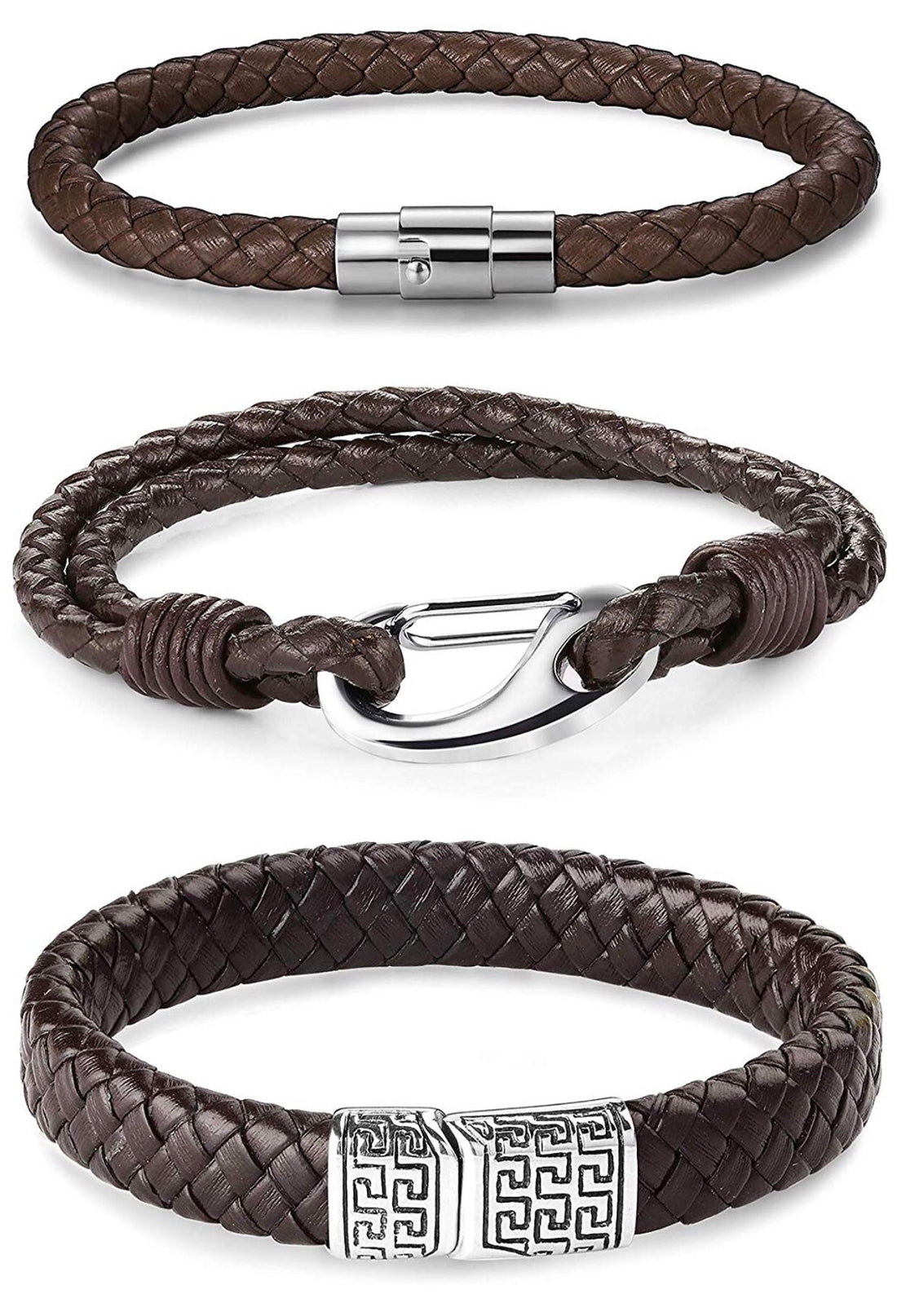 Set De 3 Piezas Brazaletes Caballero Brown Silver