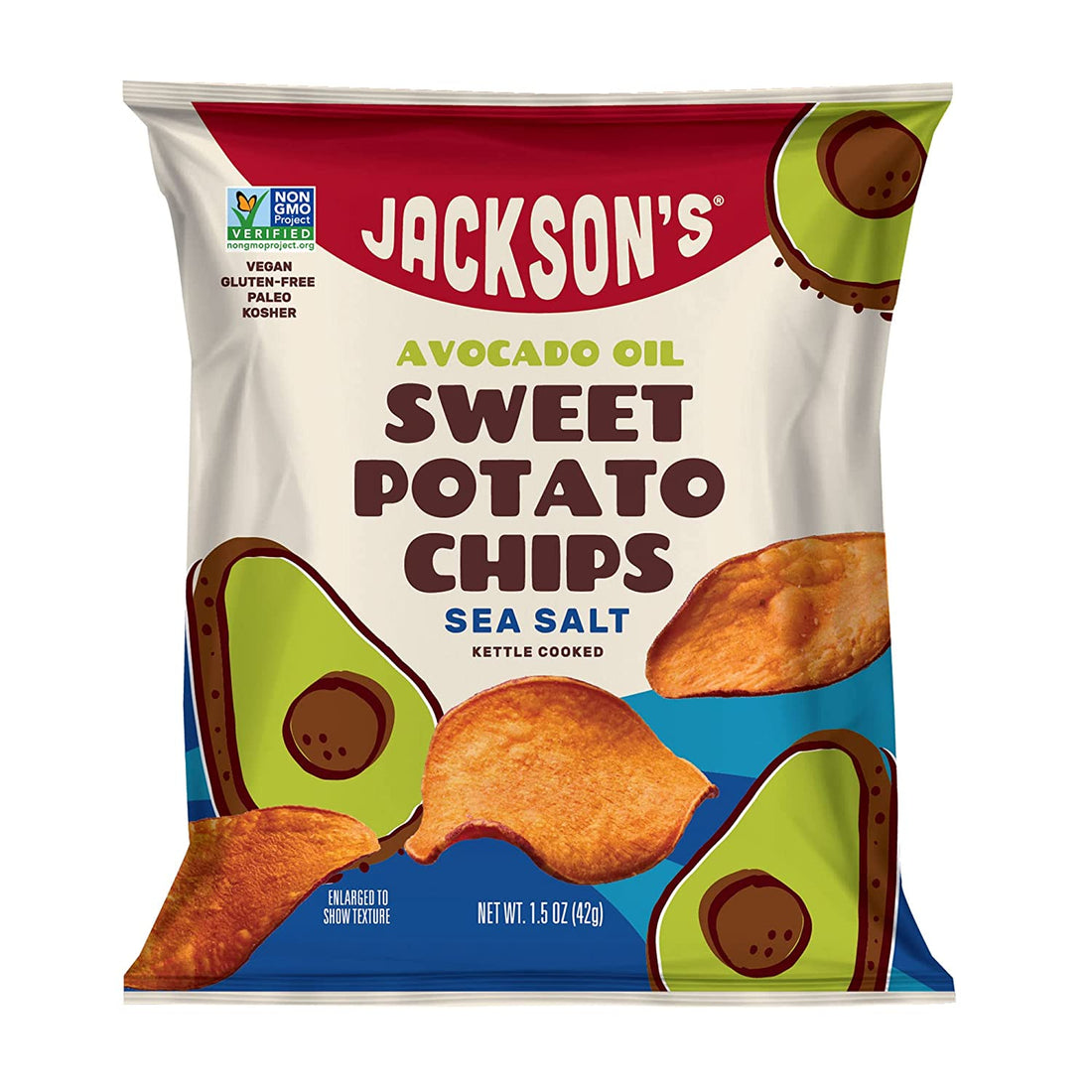 Jackson’s Sweet Potato Kettle Chips with Sea Salt made with Premium Avocado Oil (1.5 oz, Paquete de 10)