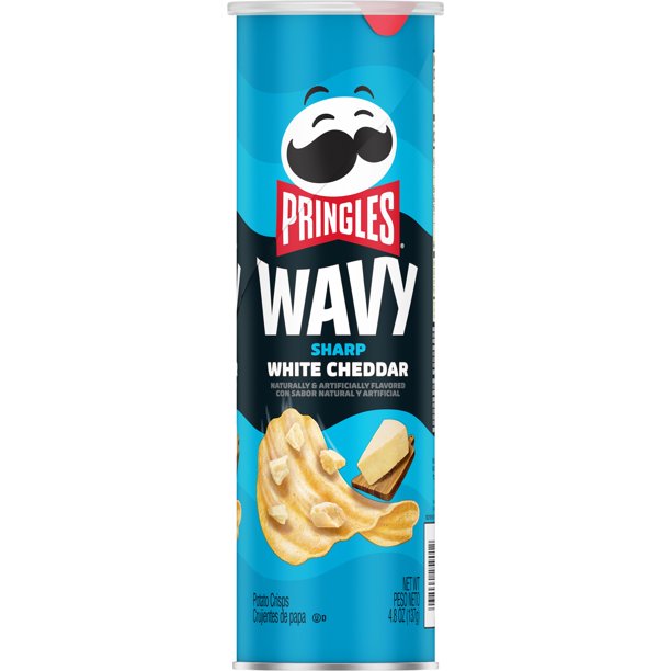 Pringles Potato Crisps Chips, Sharp White Cheddar, Lata de 4.8 Oz