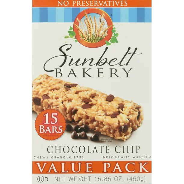 Sunbelt Bakery Chewy Granola Bars, Chocolate Chip, 15 Barras
