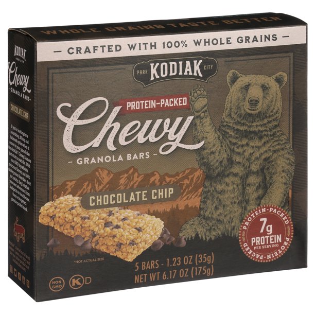 Kodiak Cakes Chewy Granola Bars, Chocolate Chip Chewy Bars, 7g de Proteina, 5 Barras, 1.23 oz.