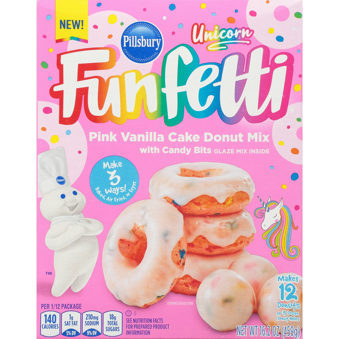 Pillsbury Funfetti Unicorn Pink Vanilla Cake Donut Mix, 16.2 oz