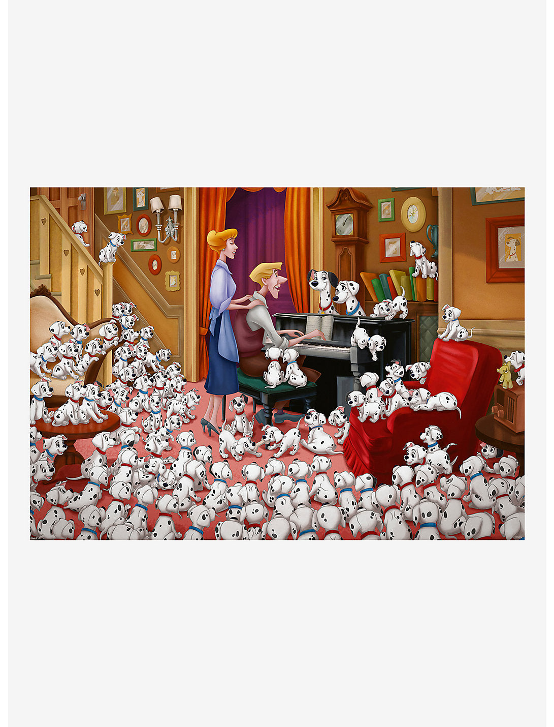 Si pensabas que 101 eran muchos dálmatas, ¿tenemos una sorpresa para ti? ¡Este rompecabezas de 101 dálmatas cuenta con la friolera de 1,000 piezas! Representa una escena de Roger y Anita al piano, dando una serenata a toda su manada de cachorros.
