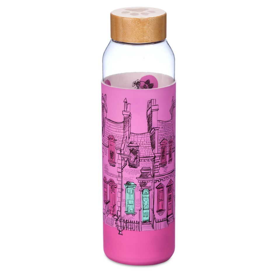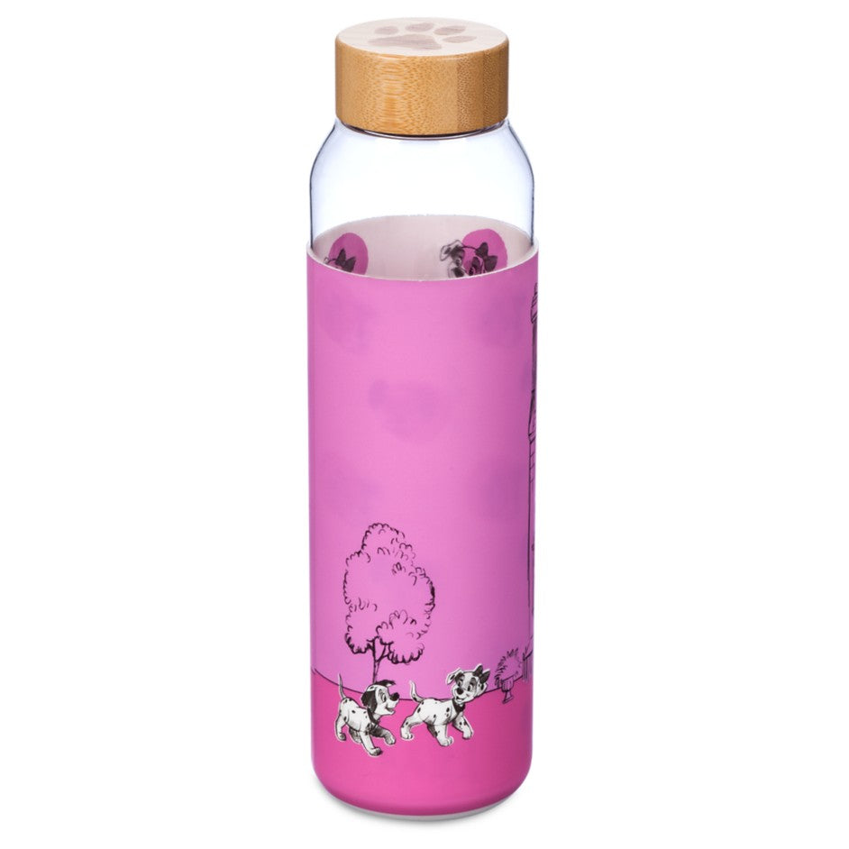 Los cachorros y los lunares hacen que esta botella de agua de 101 Dálmatas sea muy atractiva. La funda reversible significa que es el doble de bonito. Un lado tiene un estampado integral de cachorros y lunares rosados, y el otro muestra cachorros retozando contra un paisaje rosado. La tapa de bambú tiene la huella de una pata de cachorro y seguramente querrás poner tus propias patas en esta adorable botella con capacidad para 29 onzas.