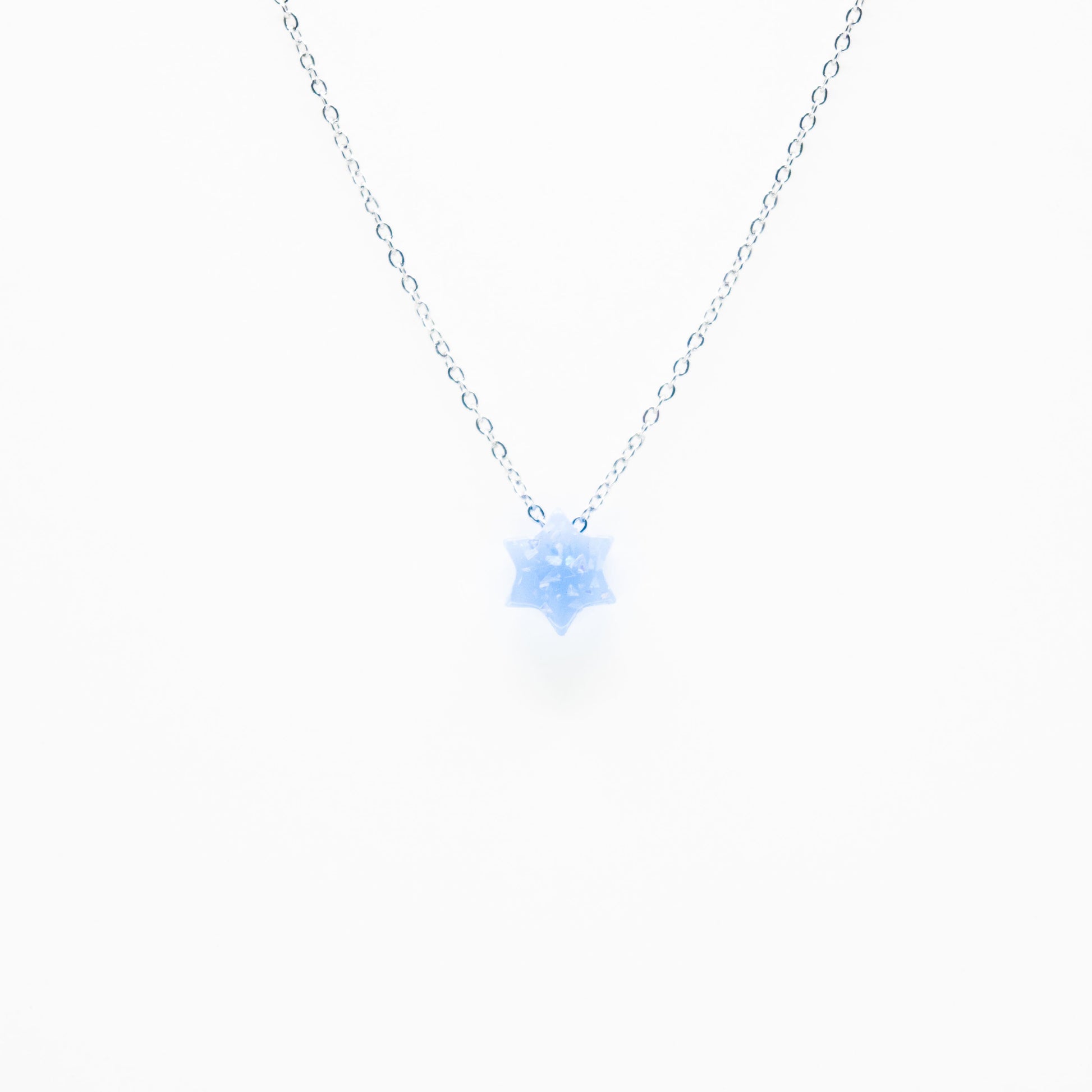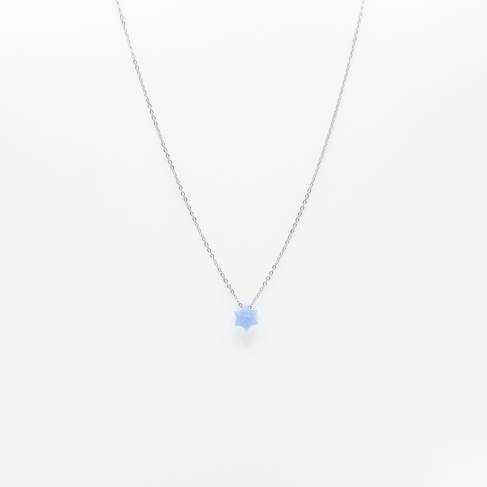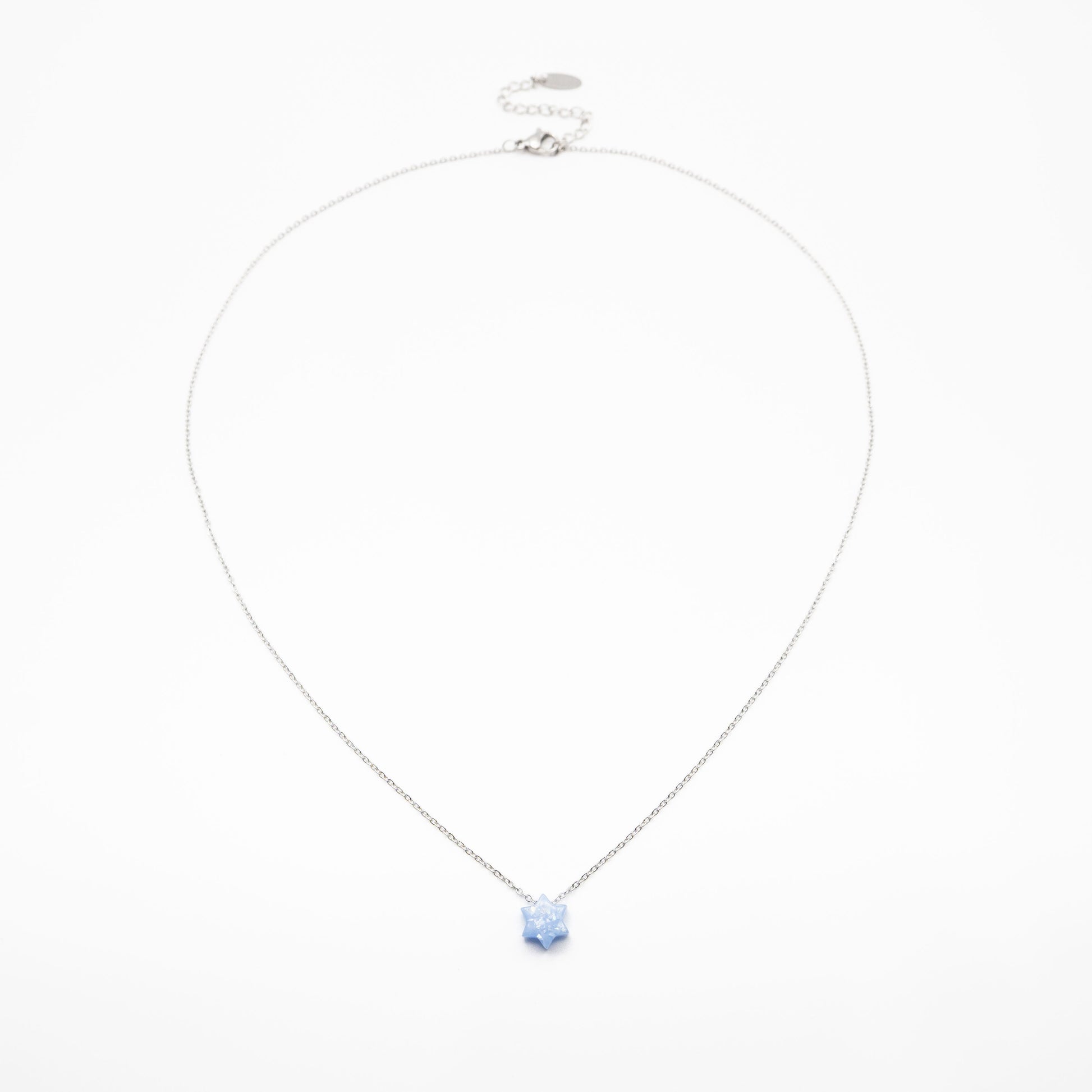 Collar de cadena plateada con dije azul marmoleado de estrella.