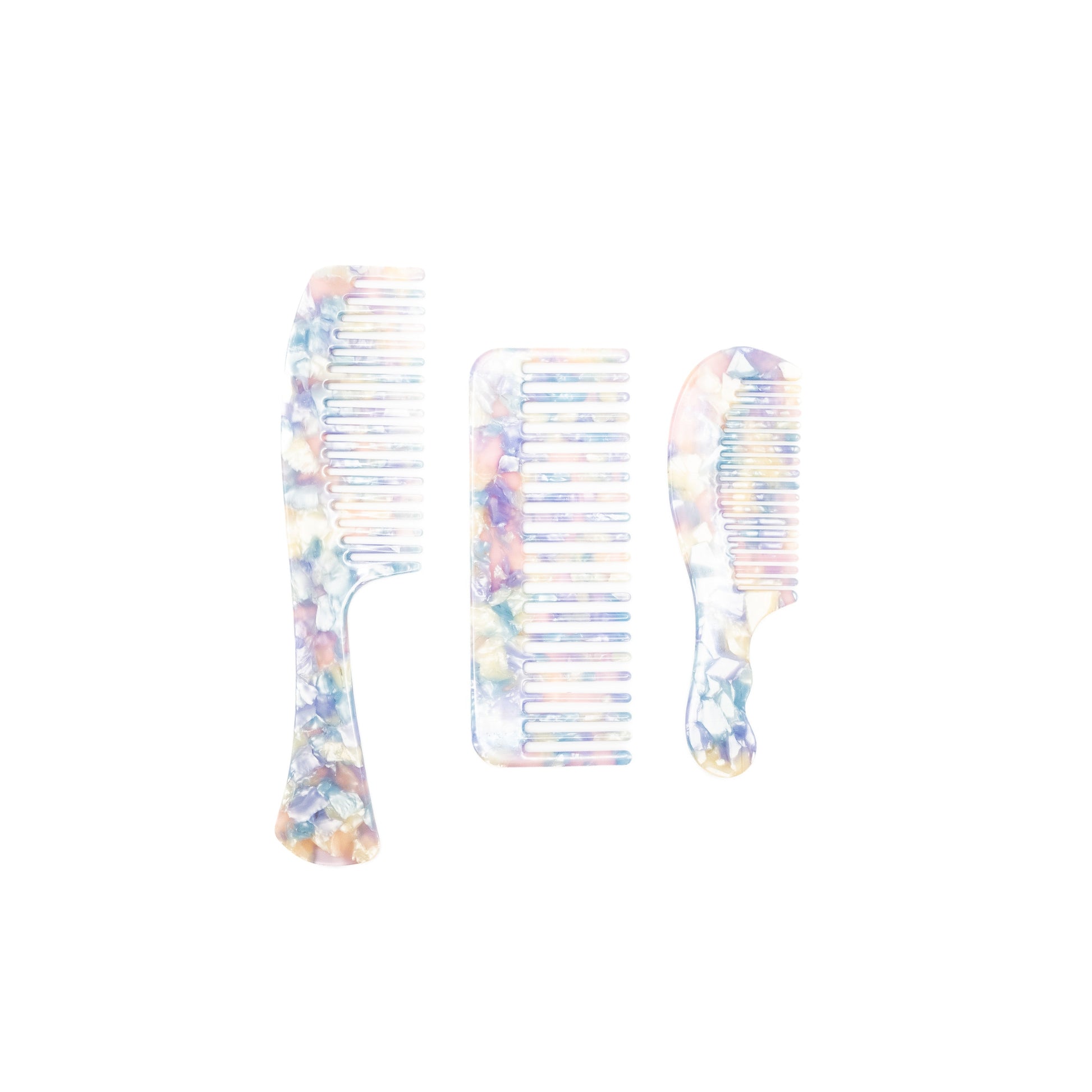 Set de 3 peines: Peine de mano, peine seco y peine húmedo. Compactos y fáciles de transportar. Estos peines están pensados para adaptarse a distintas rutinas de peinado y son una opción versátil para el uso diario.