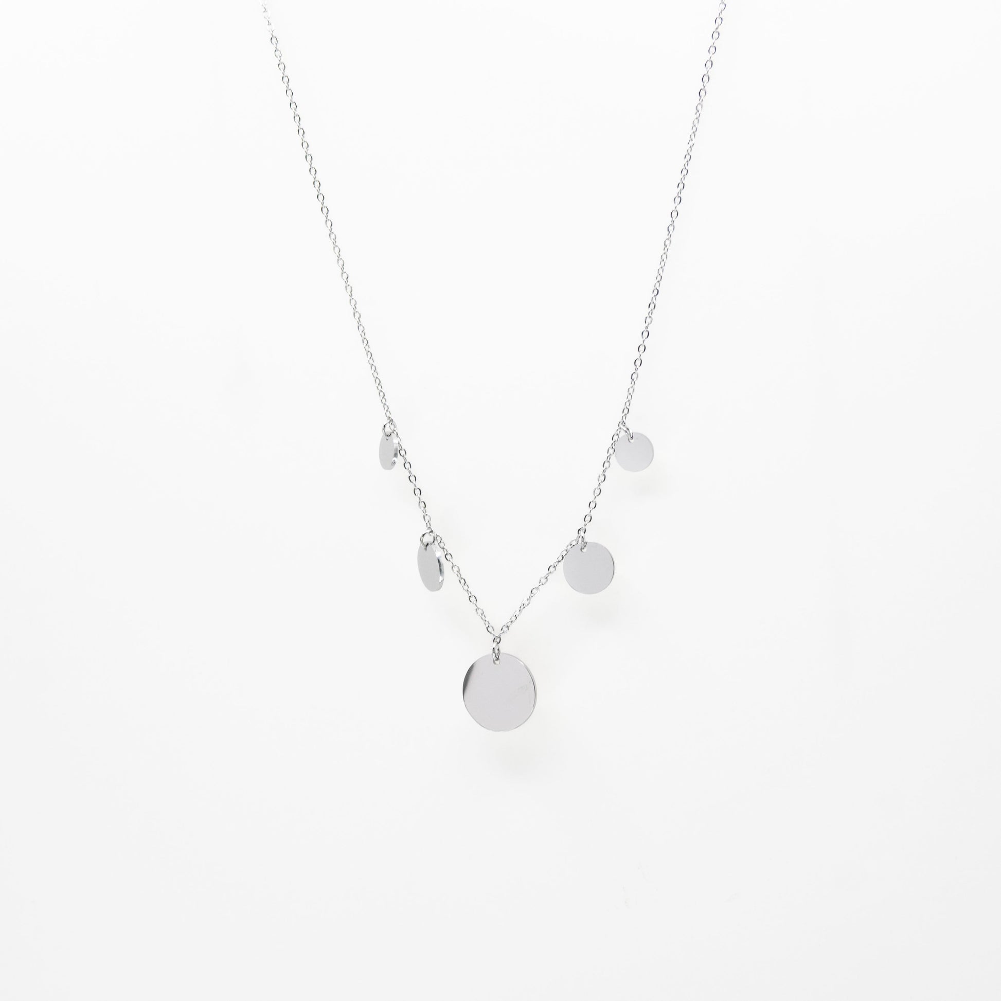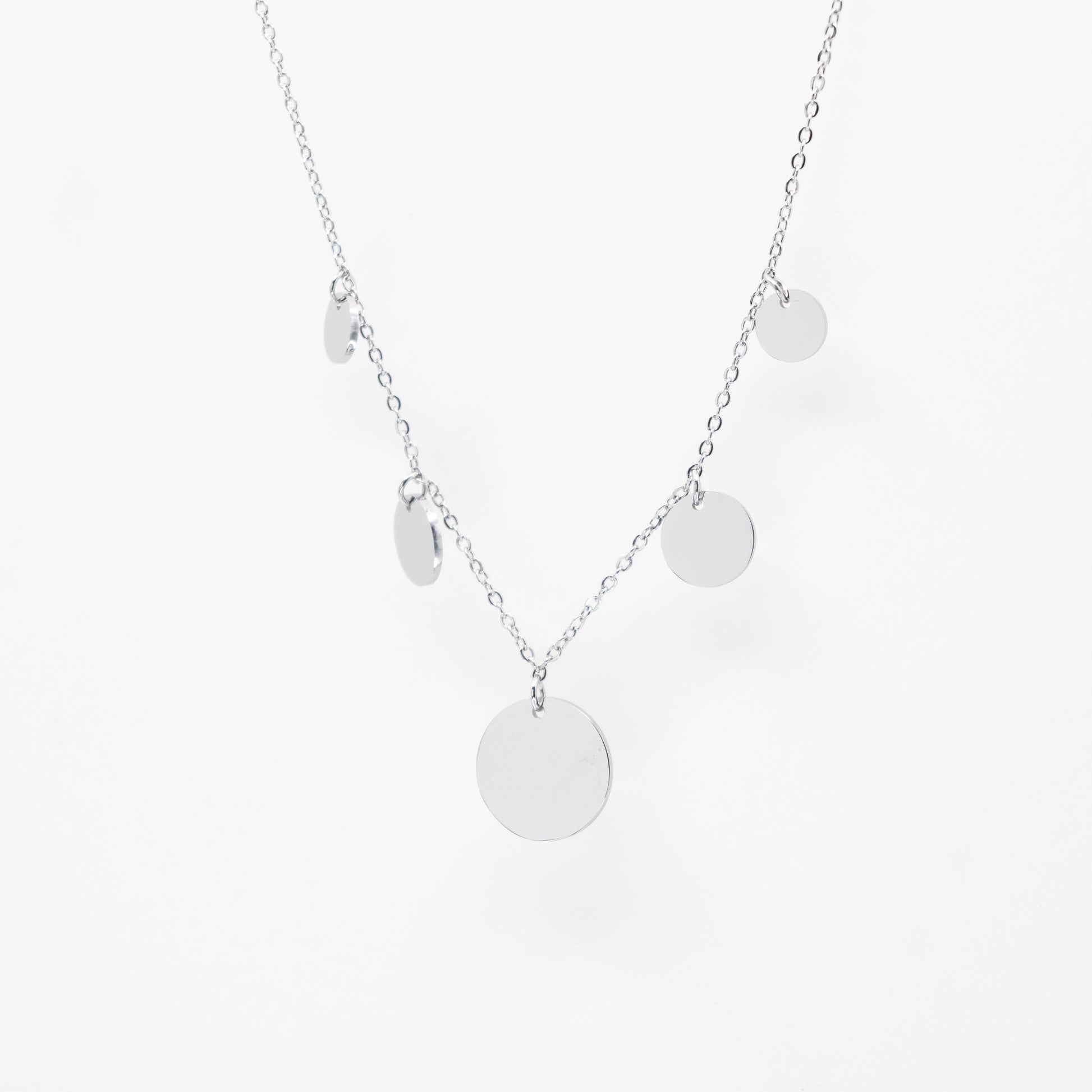 Collar de cadena plateada multidije circular.