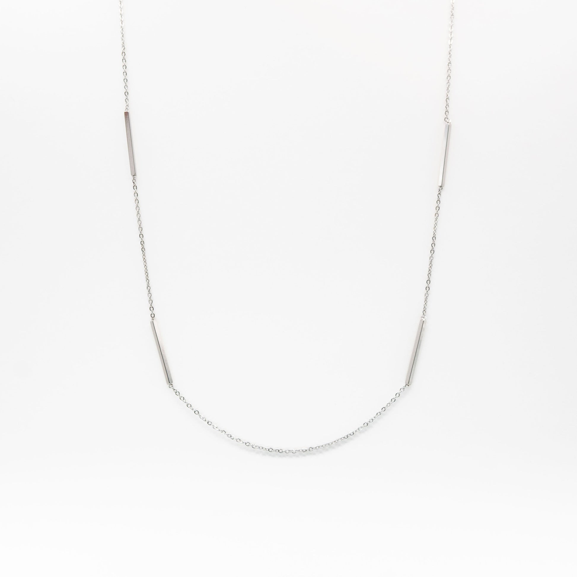 Collar de cadena plateada con tiras de acero inoxidable en cadena.