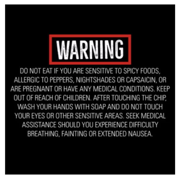 Este chip es una locura y no es para los débiles de corazón o estómago. Los buscadores de lo enchiloso pueden comer bajo su propio riesgo: ¡no todos disfrutarán del picante extremo! Si el picante es demasiado para ti, intenta beber leche o comer helado.