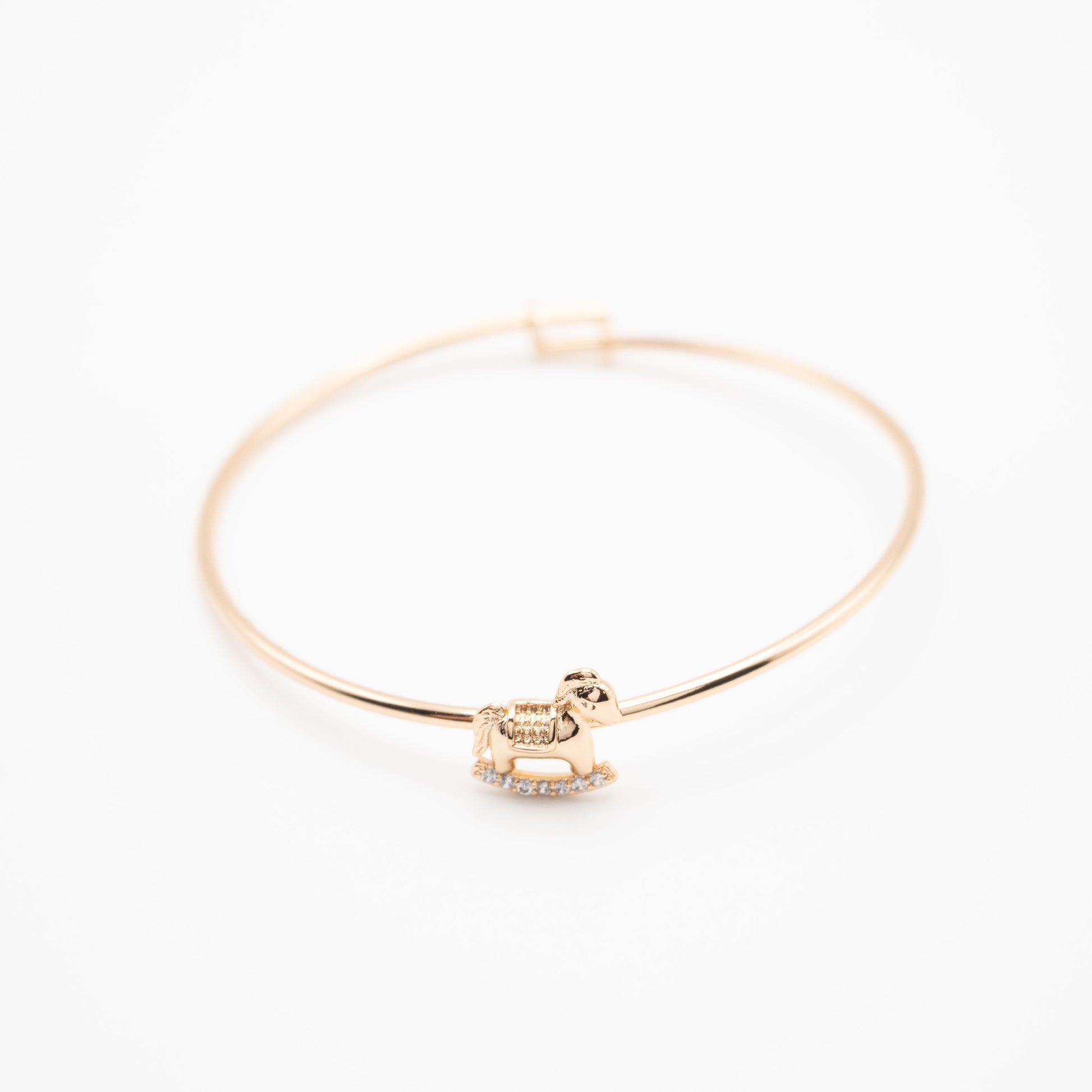 Pulsera de brazalete extensible dorado con charm de caballo balancín.