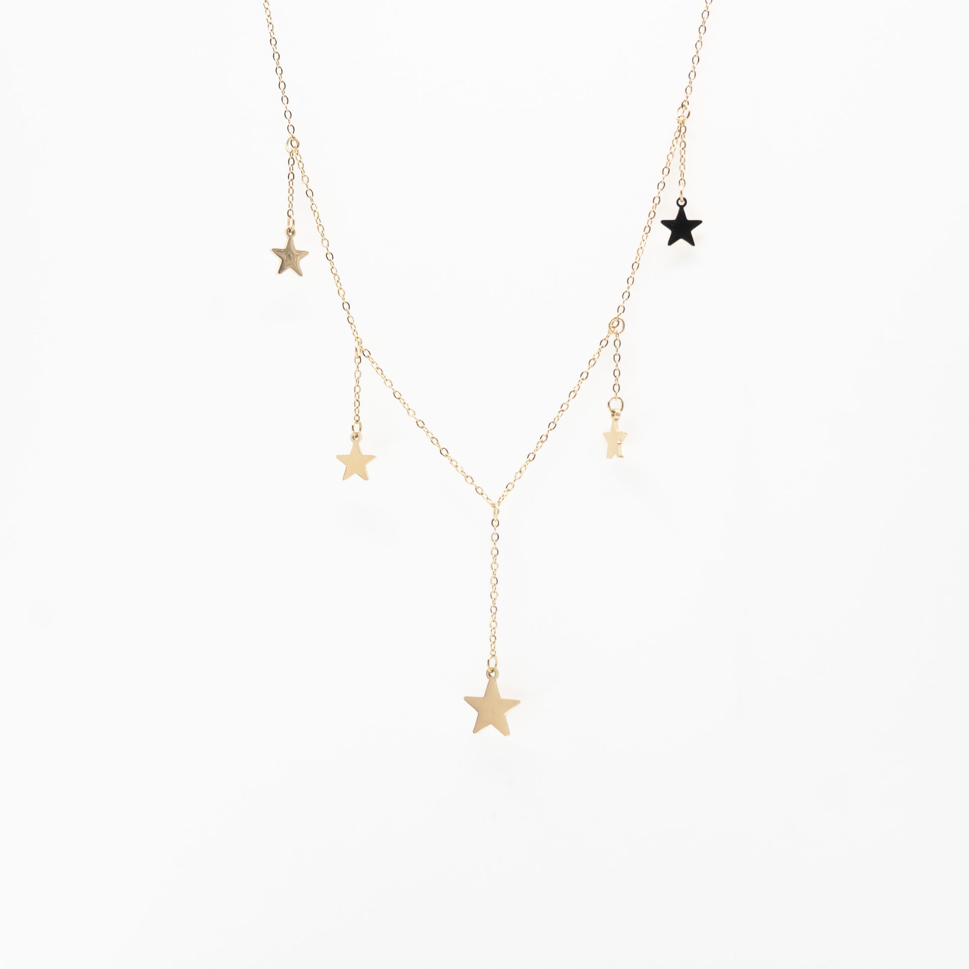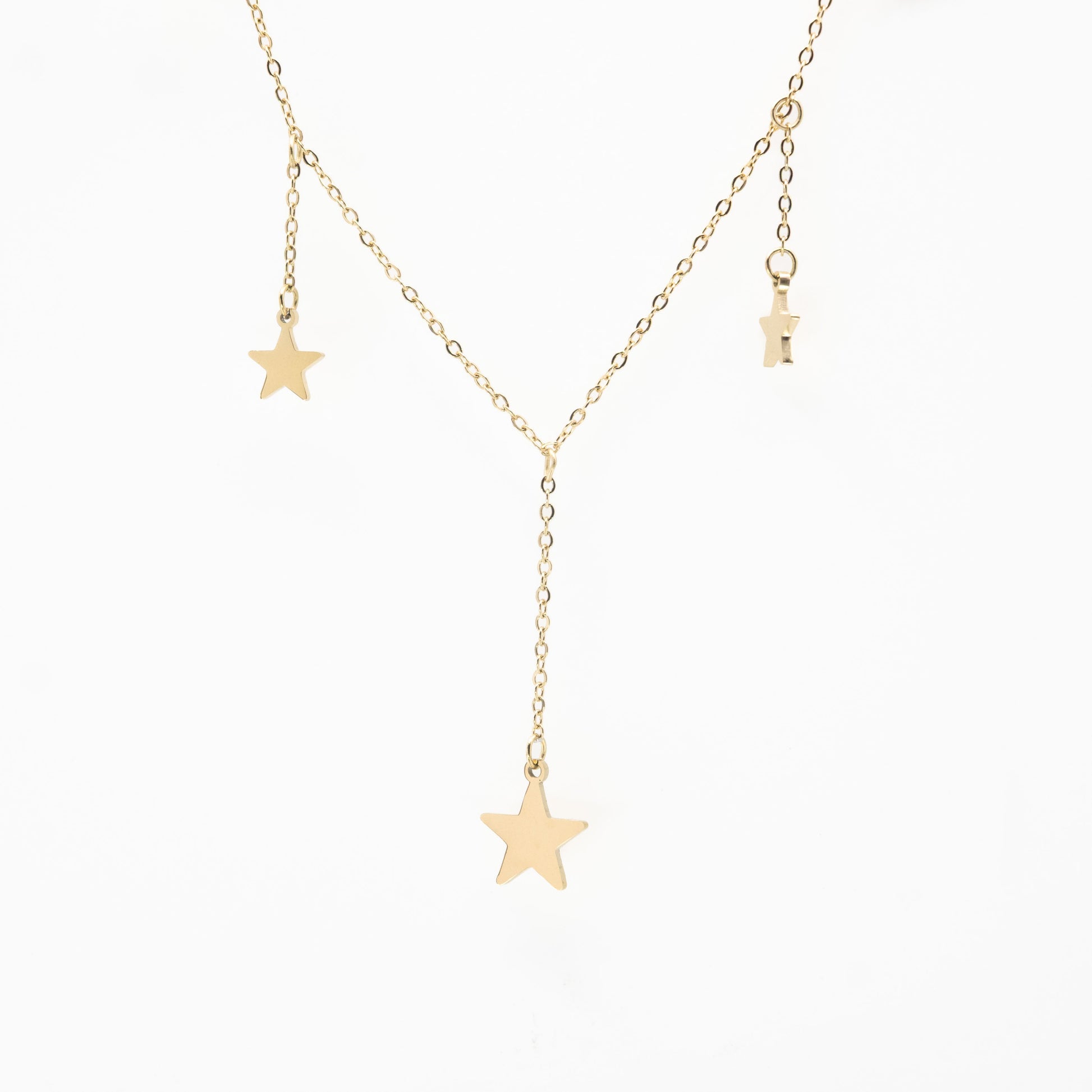Collar de cadena dorada con dijes colgantes de estrellas.