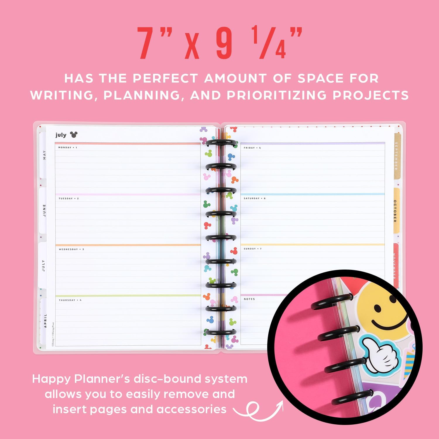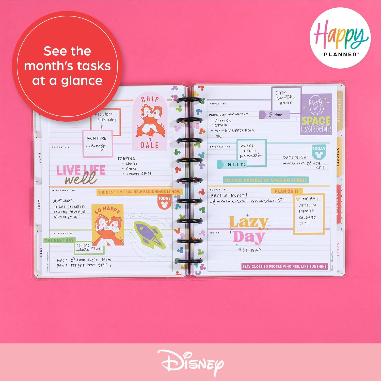 - Personalizable: haz que tu agenda de calendario Disney sea única desde adentro hacia afuera. Nuestro exclusivo lomo encuadernado en disco le permite agregar, eliminar y reorganizar las páginas. ¡Incluso puedes cambiar los discos! Añade calcomanías, bolsillos y marcadores de página para una pieza fiel a ti.