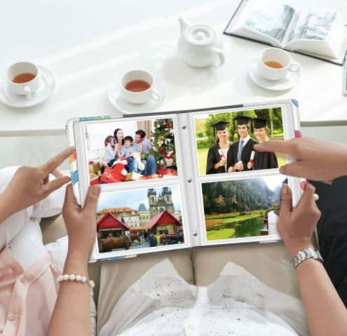 4 x 6 fotos, 112 fotos, piel vegana, con cierre a presión, portafolios portátil con diseño de corazones