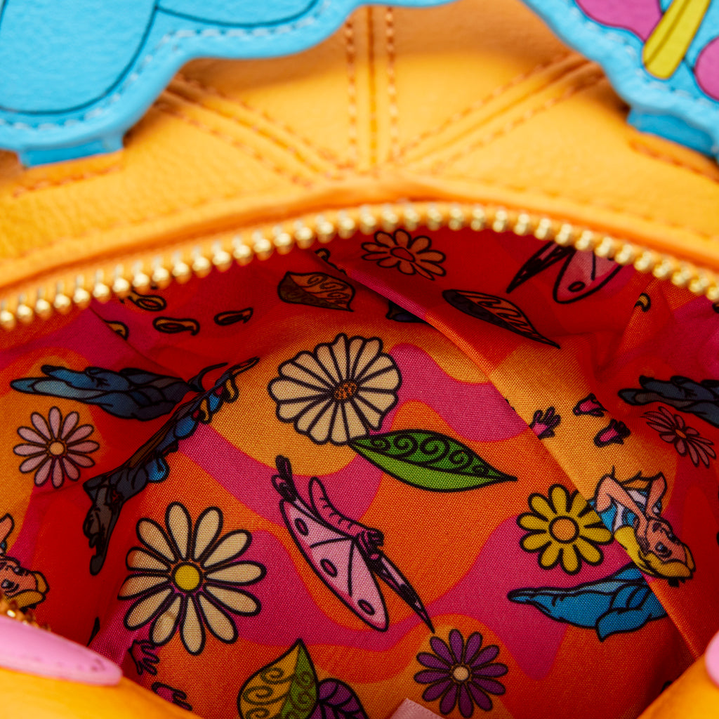 Invita la curiosidad a tu guardarropa con el bolso cruzado con figura de hongo oruga de Loungefly Stitch Shoppe Alicia en el país de las maravillas. Dando vida a una escena querida, este accesorio caprichoso toma la forma de un hongo naranja brillante como se ve en el clásico animado de Disney. La oruga malhumorada descansa a lo largo de la tapa abovedada de la bolsa, mientras que hojas de colores vibrantes aparecen en el tallo de abajo. Abra la cremallera de la bolsa en la base de la parte superior del hongo para guardar cualquier recuerdo que encuentre a lo largo de sus viajes. Este bolso cruzado más grande que la vida transformará cualquier atuendo y es el accesorio perfecto para los fanáticos de Disney que buscan tener cerca una de sus películas favoritas.