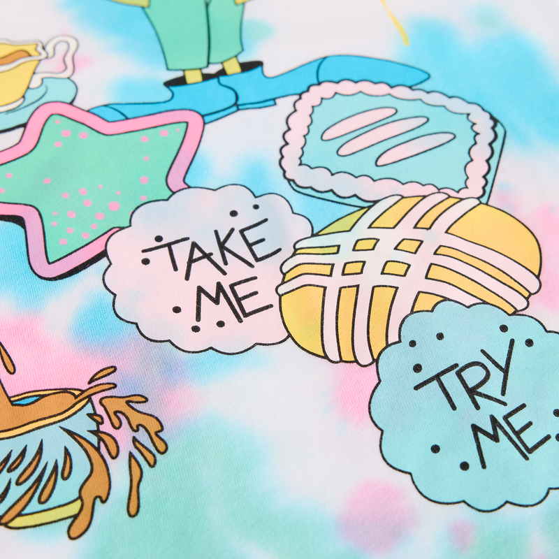 ¿Llegas tarde a una fiesta que no es de cumpleaños? Nuestra camiseta unisex Loungefly Disney Alice in Wonderland Unbirthday es una forma rápida y festiva de prepararse. Esta camiseta de manga corta y cuello redondo presenta un teñido anudado en colores pastel con serigrafía. Podrás ver a los personajes favoritos de los fanáticos de la escena de la fiesta del té en la película. El Sombrerero Loco de Disney sirve té en una tetera amarilla de tres picos. La Liebre de Marzo de Disney también está en escena, su taza de té se desborda y el Lirón de Disney flota hacia abajo con un paraguas, en medio de una explosión de fuegos artificiales. Algunas delicias entre las galletas tienen las etiquetas "Pruébame" y "Llévame". Conmemora tu no cumpleaños con estilo con esta camiseta versátil y cómoda.