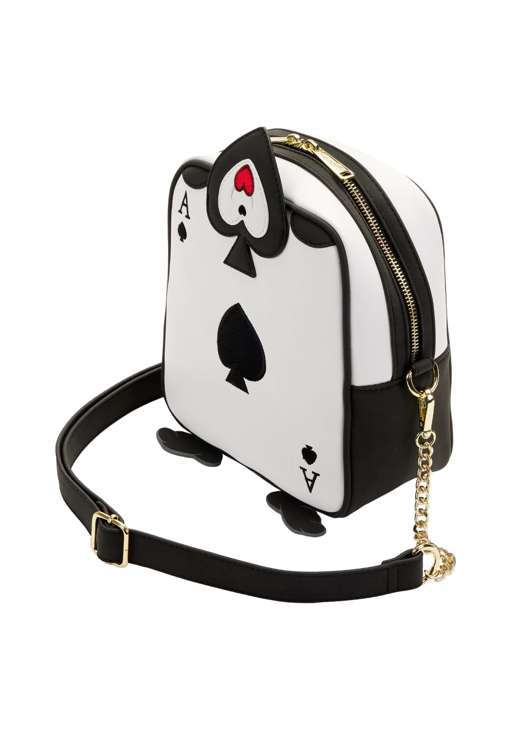 Las espadas de la dama de corazones pueden no haber sido su color favorito o sus compañeros preferidos. ¡Pero tenían un trabajo más divertido! ¡Pasar todo el día en el jardín pintando suena a sueño! E incluso si no, seguramente sería más relajante que escoltar a la Reina y transportar personas a su antojo más feroz. ¡Reclame un poco de ese papel cuando agregue este Loungefly Disney Alice in Wonderland Ace of Spades Crossbody a su colección!