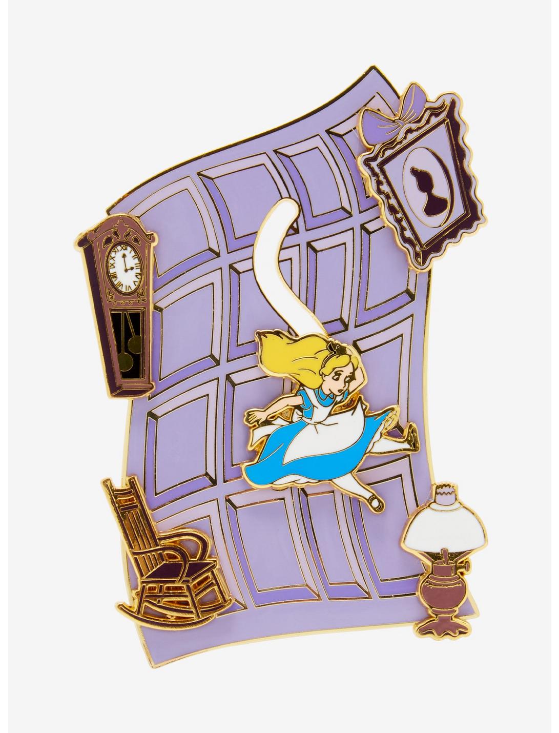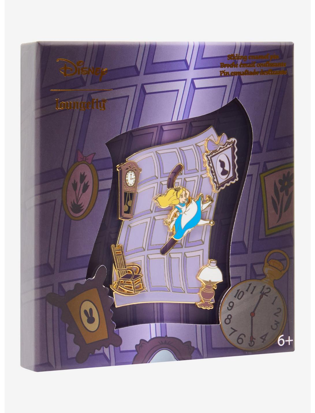 ¡Haz un viaje al País de las Maravillas con este pin esmaltado de Loungefly! Inspirado en Alicia en el país de las maravillas, este broche muestra a Alicia cayendo por la madriguera del conejo, rodeada de muebles. Con Alice en una pista en movimiento, esta pieza seguramente hará que tu colección sea cada vez más curiosa.