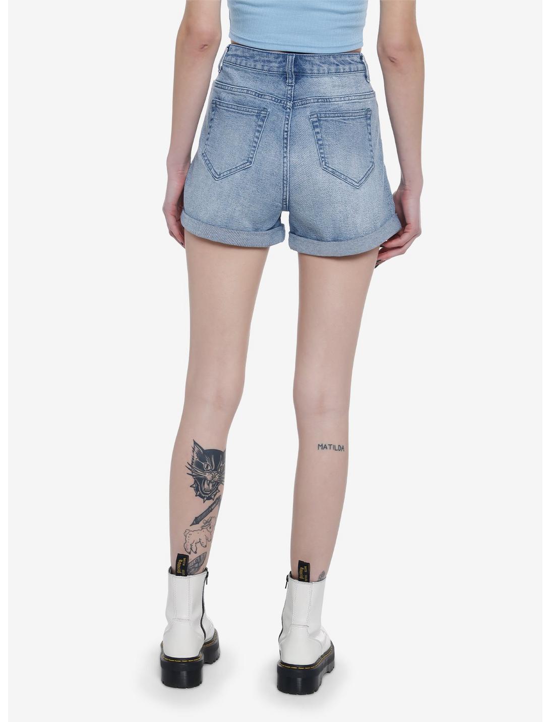 ¡No llegues tarde a tu fecha tan importante! ¡Ponte estos shorts de mamá de Alicia en el País de las Maravillas y estarás lista para caer por la madriguera del conejo! Estos shorts con puños tienen la cara de Alice impresa en un lado y flores en el otro. Viene con estilo de 5 bolsillos y cierre de botón y cremallera.