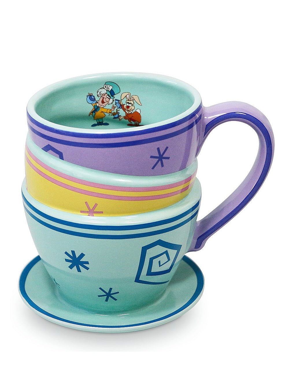 Estarás simplemente loco por esta taza de Alicia en el país de las maravillas que convierte la hora del té en una fiesta. El novedoso diseño de cerámica se asemeja a tres tazas de té apiladas, cada una con un patrón diferente para que siempre se dibuje una sonrisa.