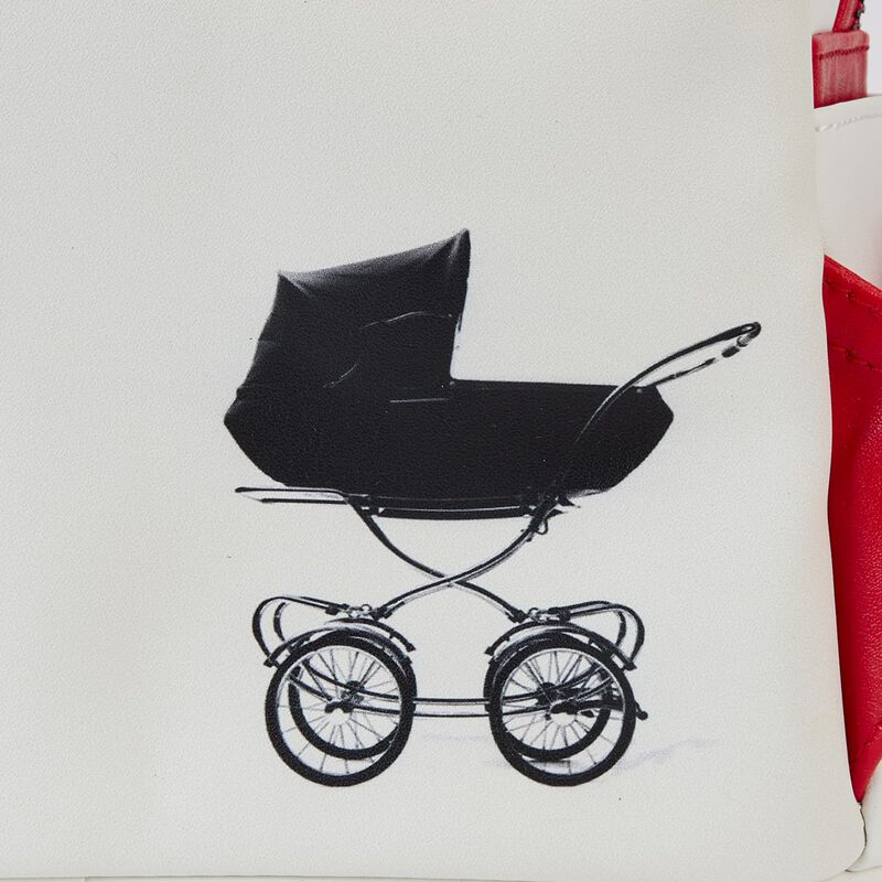 ¡Adivina quién está fuera de casa! Mejora tu guardarropa con nuestra mini mochila para cosplay Loungefly Annabelle. Este inquietante accesorio de moda presenta un aplique de la cabeza de Annabelle que se eleva sobre el borde superior de la mochila. Cintas de lazo reales están sujetas a sus coletas trenzadas, y detalles de cintas de satén rojas brillantes complementan el fondo blanco de su vestido. Un aplique de volante sobre el bolsillo delantero añade un toque auténtico, y una rosa de imitación de satén roja en 3D completa el look. En la parte trasera encontrarás una imagen impresa de un cochecito de bebé. Evoca muchas aventuras con este accesorio tremendamente divertido.