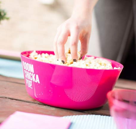 Contiene una bolsa de 4.8 onzas de palomitas de maíz con sal marina BOOMCHICKAPOP de Angie