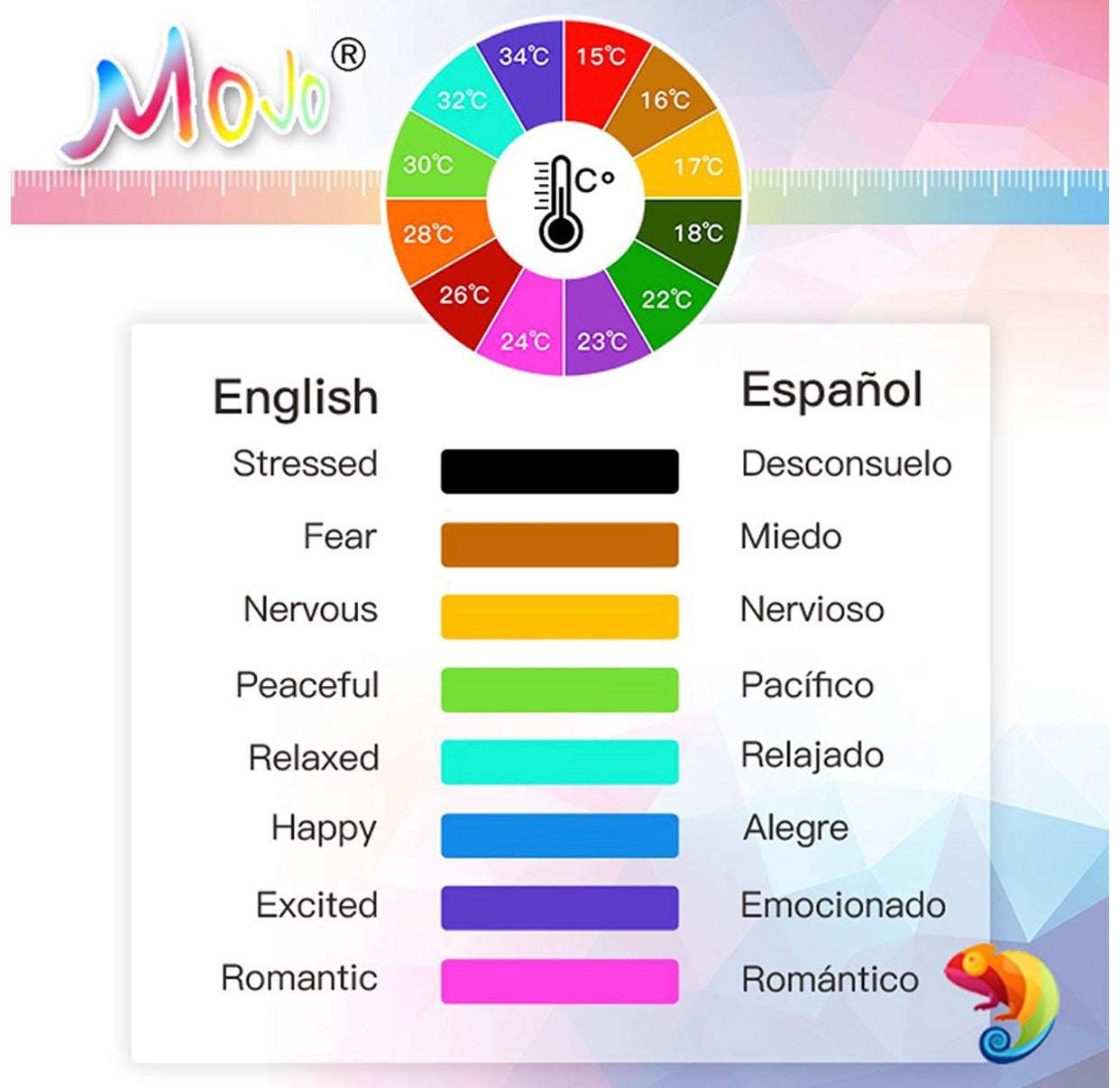Cada estado de ánimo piedra cambia de color en función de la temperatura diferente; Cada color representa un estado de ánimo distintos.