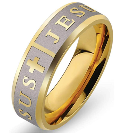 Anillo Jesus Dorado y Plateado Cristianismo