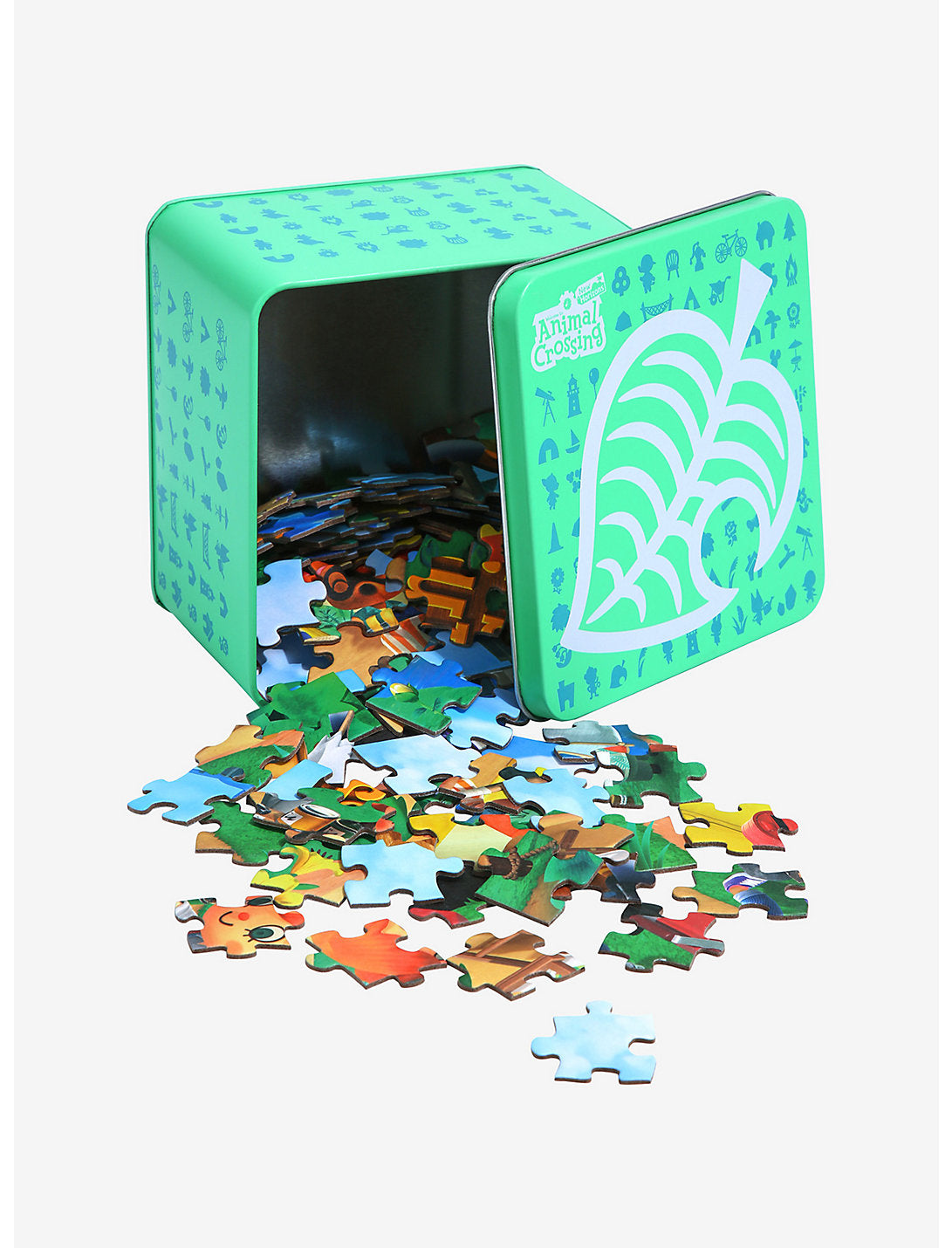 - ¡Reúne a tus aldeanos favoritos, encuentra un buen lugar afuera y trabaja en este rompecabezas de Animal Crossing! ¡Reúne una imagen de tus personajes favoritos disfrutando de la vida en la isla! Viene en una lata coleccionable con el logo de la hoja y otros íconos.