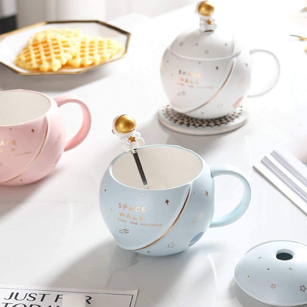 - Diseño de taza de astronauta: la taza de corte tiene un novedoso patrón de astronauta, delicado, hermoso y a la moda, capacidad perfecta de 15.2 fl oz