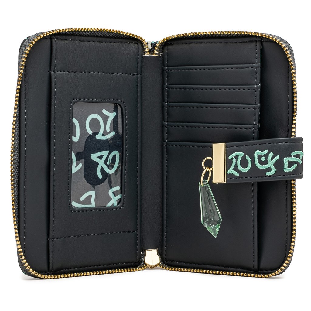 Celebra el vigésimo aniversario de Atlantis de Disney: el imperio perdido con la cartera con cremallera del vigésimo aniversario de Disney Atlantis. ¡En el frente, Milo y Kida se ven entre dibujos atlantes! En el interior se pueden ver letras atlantes y hay un dije de cristal en el cierre. Esta billetera es perfecta para llevar tus necesidades mientras te embarcas en aventuras épicas.