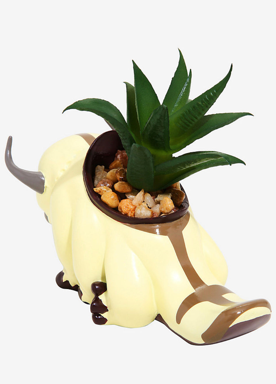 ¡Appa te dejará boquiabierto manteniendo tu planta viva para siempre! (Totalmente no porque es falso). El equipo Avatar ha sido reemplazado por una falsa suculenta, ubicada en esta mini maceta con forma de bisonte volador de Avatar: The Last Airbender.