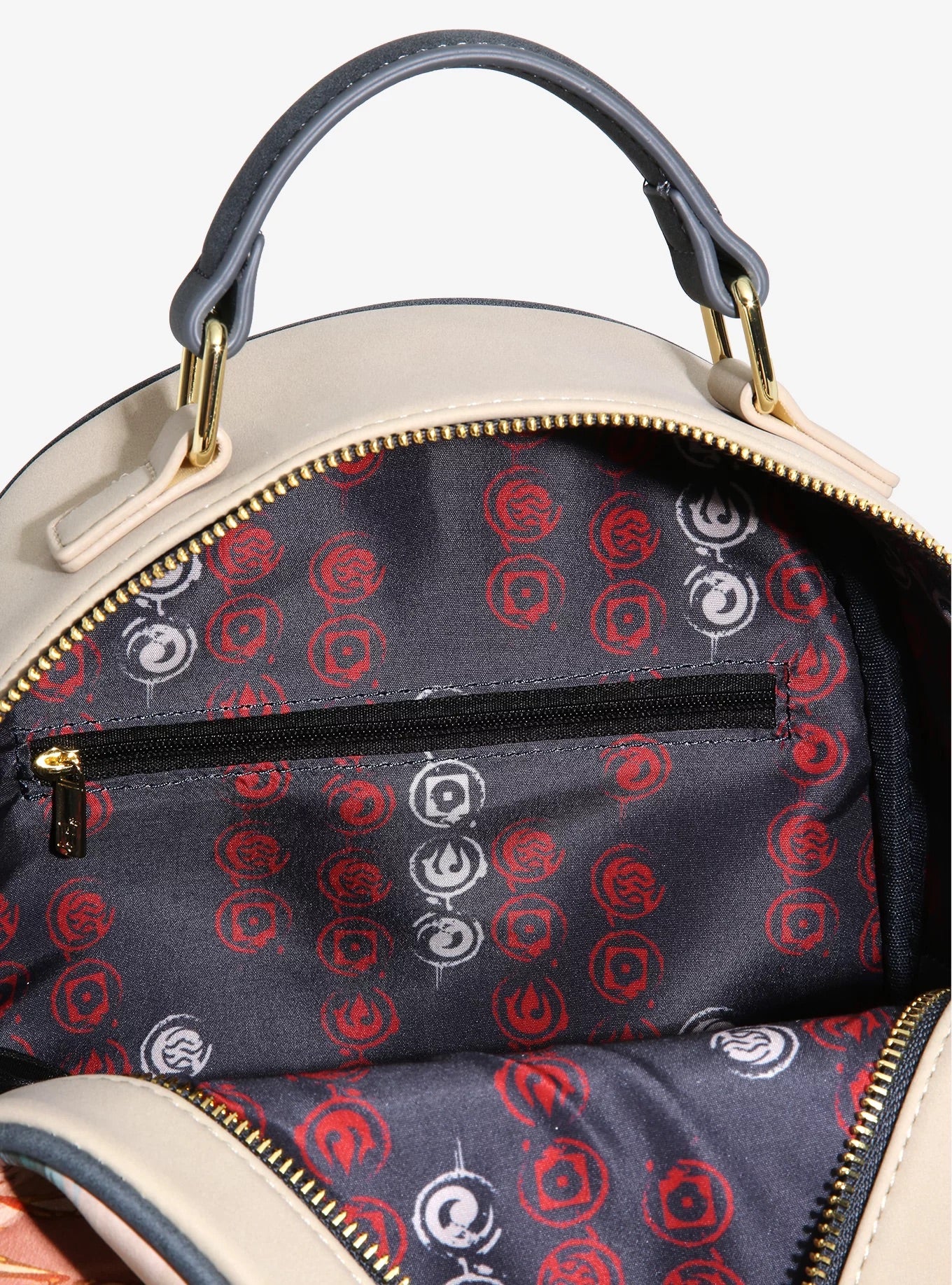 Korra está aquí para traer equilibrio al mundo y a tu guardarropa. No tienes que hacer todo lo posible para armar un atuendo épico, solo usa esta mini mochila Loungefly de piel sintética que exhibe impresionantes ilustraciones impresas de Korra, ¡rodeada de todos los elementos! El exterior también presenta un acabado de gamuza, detalles en relieve, herrajes en tono dorado, una insignia de la marca esmaltada, bolsillos laterales y correas ajustables. En el interior, encontrarás un bolsillo con cremallera y un forro gris con un patrón de símbolo integral de The Legend of Korra.