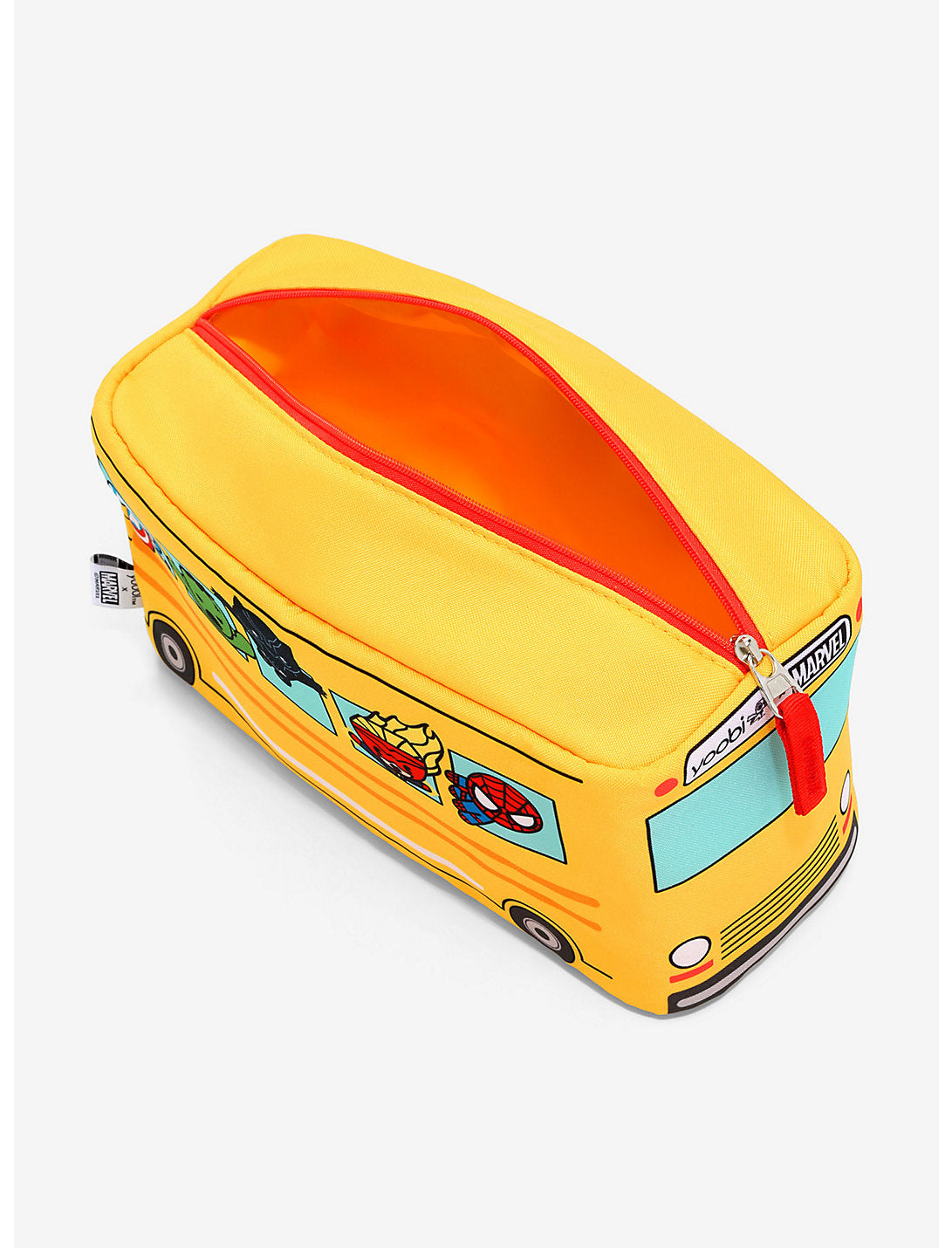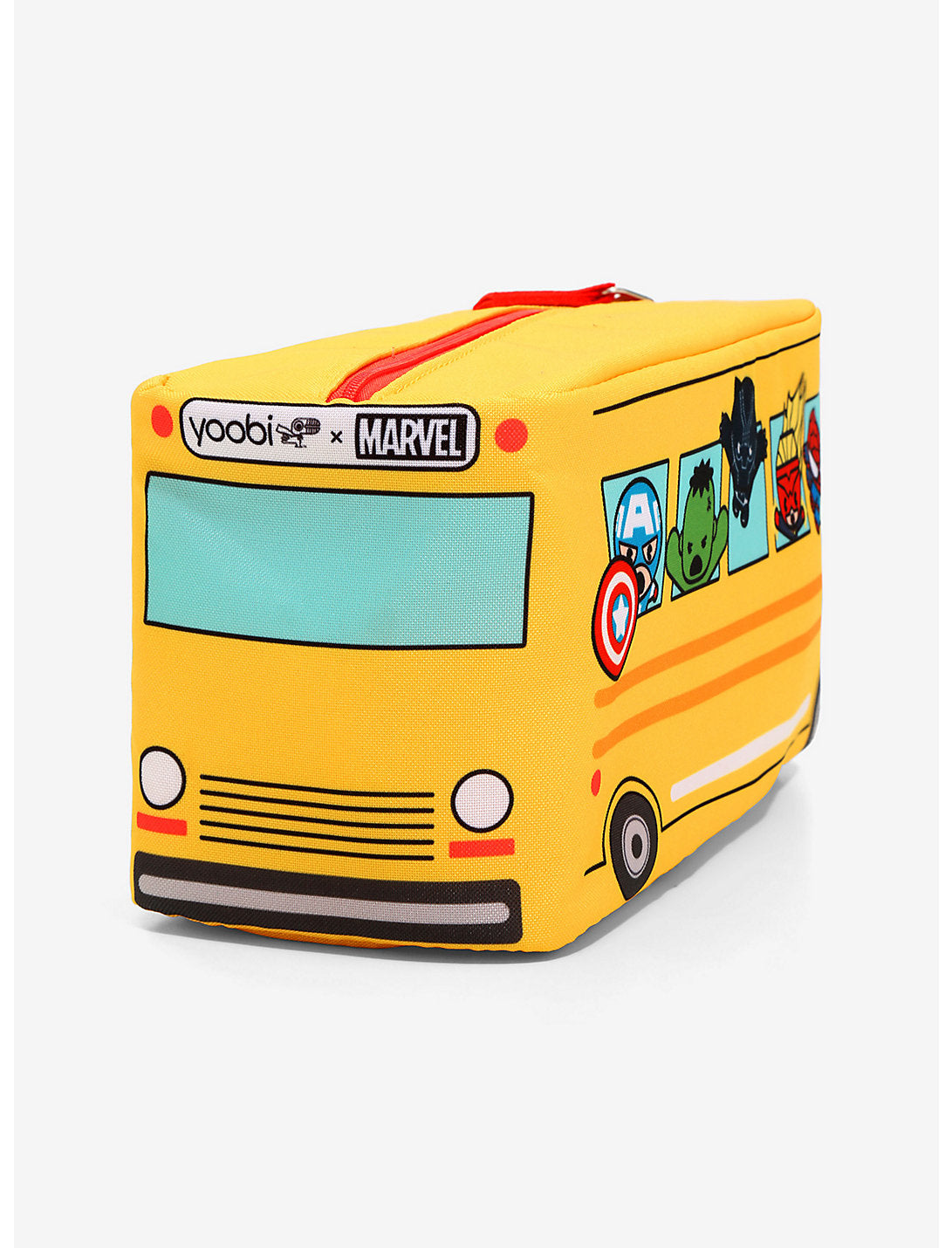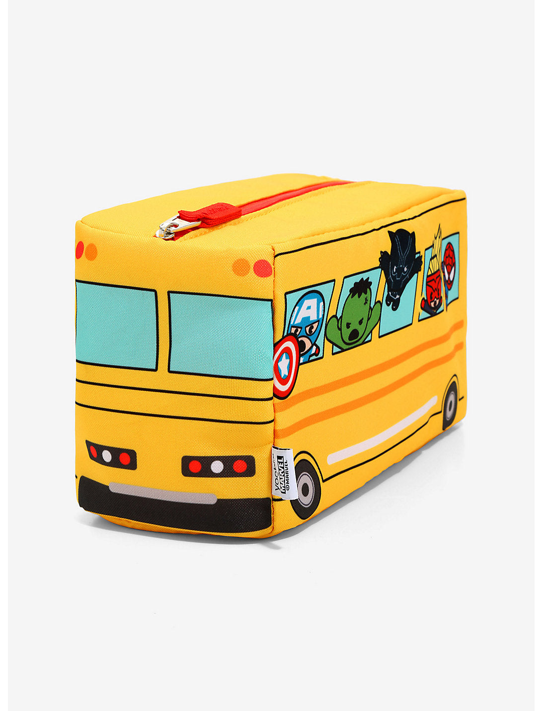 ¡Todos a bordo, los Vengadores están aquí para asegurarse de que sus suministros estacionarios estén asegurados y listos! Spider-Man, Captain Marvel, Black Panther, Hulk y Captain America se ven en lindos estilos chibi, ¡esperando que llenes este autobús escolar con lápices, bolígrafos y más! Este adorable estuche para lápices con temática de autobús escolar también cuenta con un fondo plano para exhibir con orgullo en su escritorio.