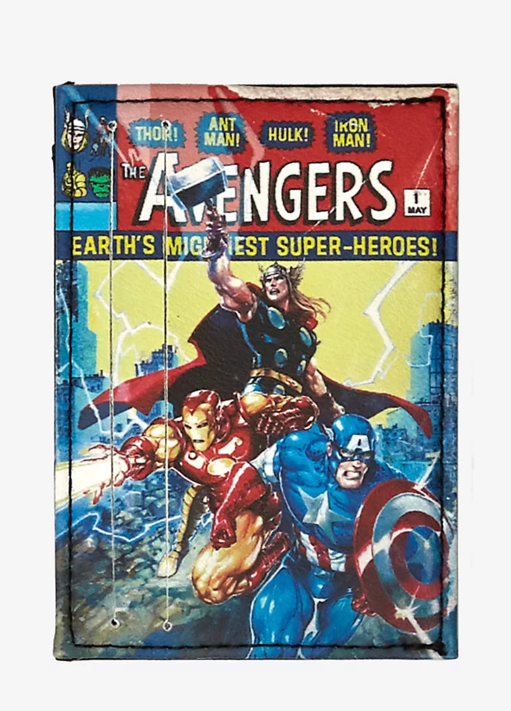 Cuenta con un diseño de cómics de Marvel de la vieja escuela, 2 ranuras para tarjetas y una ranura para identificación transparente.