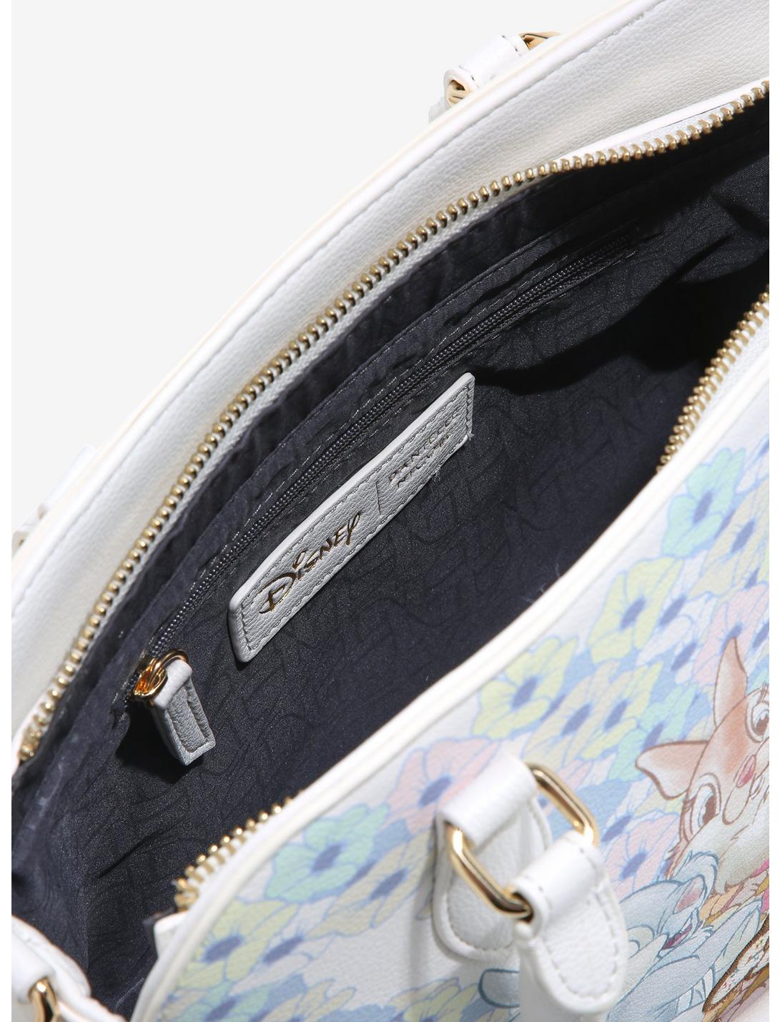 Thumper está listo para incorporar un poco del estilo de Bambi a tu estilo cotidiano con un poco de ayuda de este bolso de mano de Danielle Nicole. Inspirado en el clásico animado de Disney, Thumper descansando en las flores con Miss Bunny y más adorables amigos conejos como el gráfico frontal de este estilo. Con herrajes en tonos dorados, detalles florales bordados en la parte delantera, asa superior, correa ajustable extraíble para cambiar fácilmente de estilo y un bolsillo interior con cremallera, este accesorio es la forma perfecta de agregar un toque primaveral a tu guardarropa.