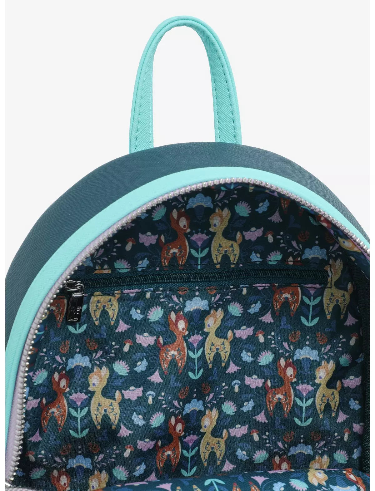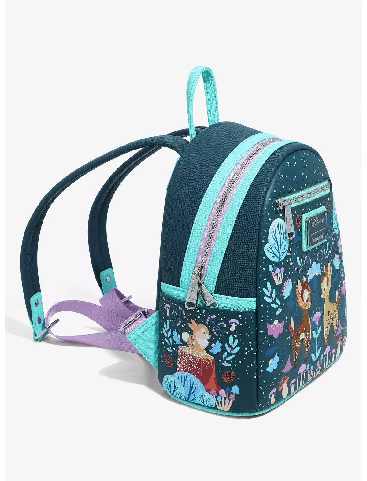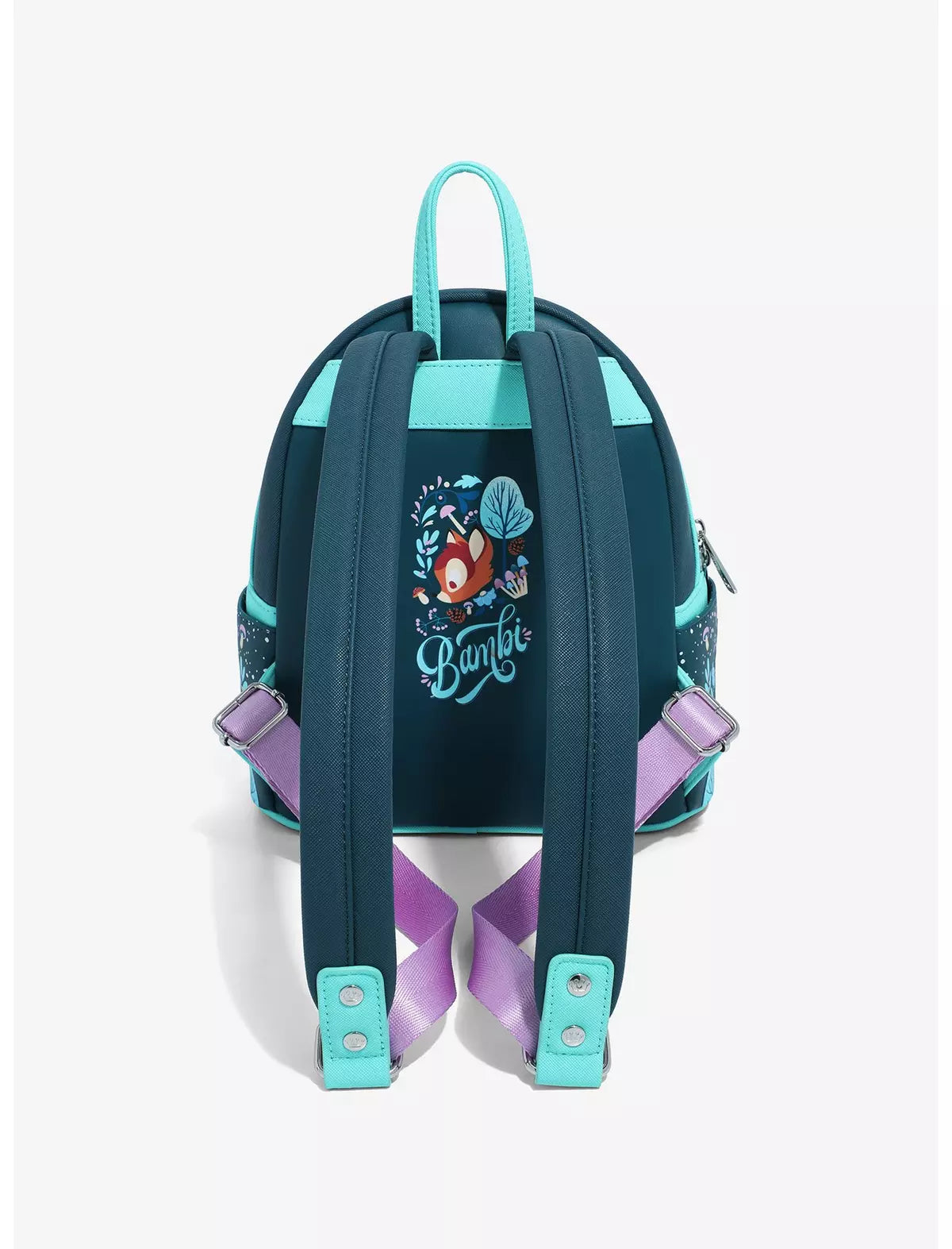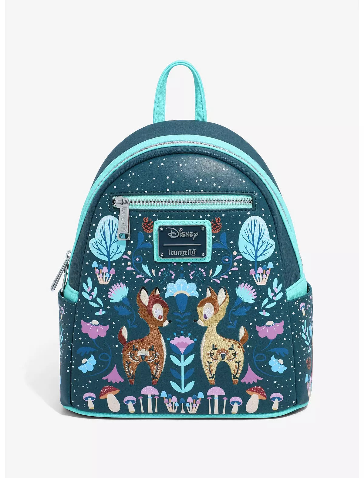 ¡Prepárate para tu próximo viaje a los Parques Disney con esta mini mochila inspirada en Bambi! Con un diseño integral de setas y plantas, el frente de este bolso incluye retratos bordados de Bambi y Faline debajo del bolsillo frontal con cremallera. Con bolsillos laterales, un diseño trasero de Bambi debajo de las letras de su nombre y correas ajustables, esta mochila es perfecta para tu próximo paseo por el bosque.