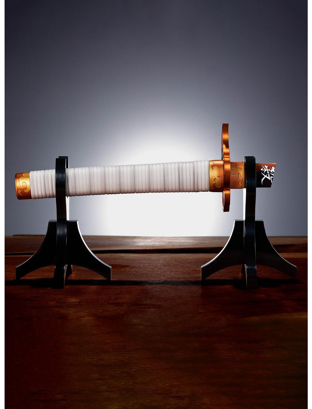 ¡La espada Nichirin rota de Kyojuro Rengoku está aquí como una Proplica de tamaño real de Bandai Spirits! La hoja de Rengoku fue creada para capturar la sensación icónica y usada de una hoja rota de la vida real utilizando plástico cuidadosamente moldeado. Presenta detalles finos, como un protector tsuba pintado en un naranja metálico similar al fuego para contrastar, como se ve en Demon Slayer: Kimetsu no Yaiba. La espada también reproduce más de 50 sonidos del anime, que van desde la música de fondo del anime hasta muestras de los diálogos de Kyojuro Rengoku, Akaza y Ruka Rengoku.