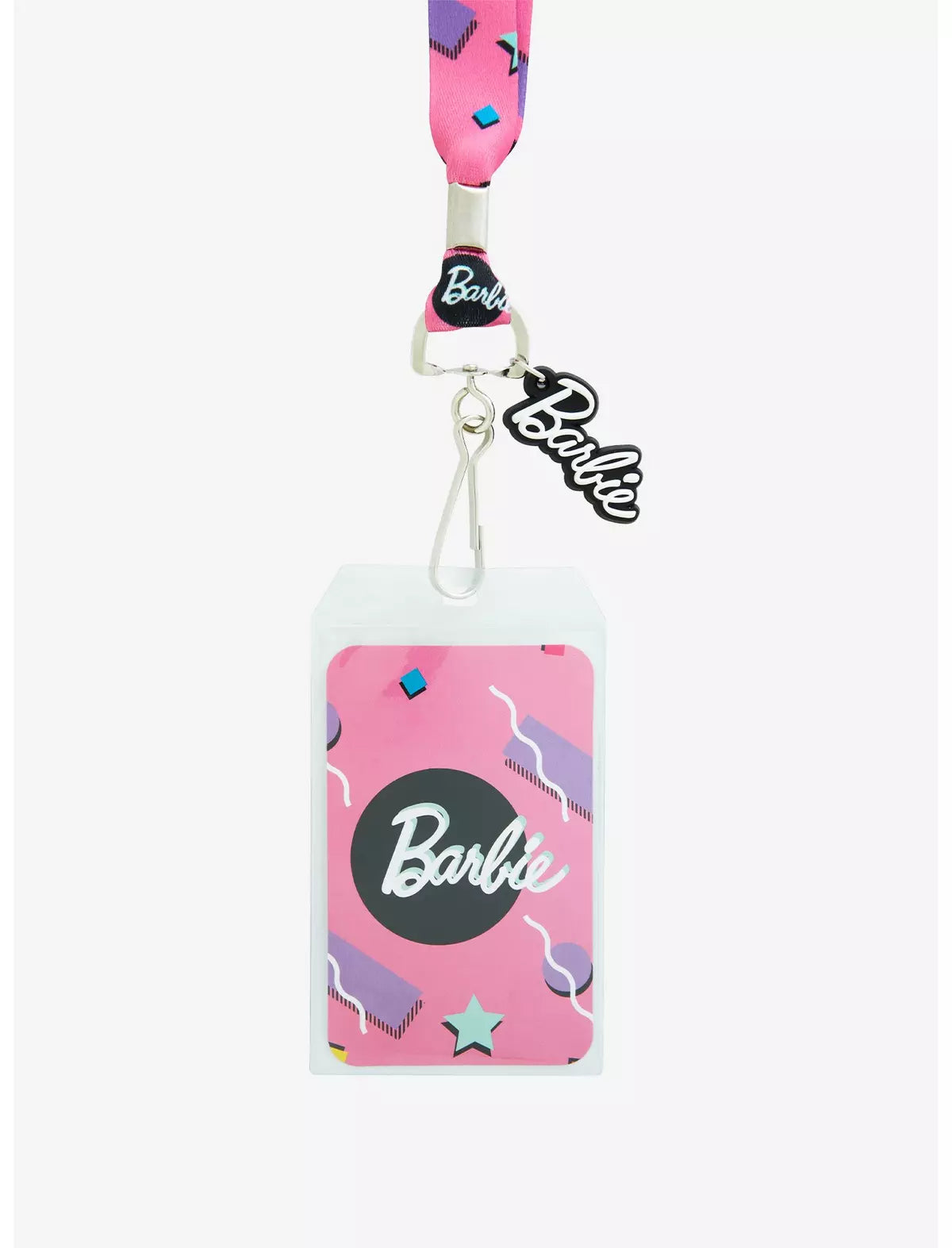 ¡Lleva tus elementos esenciales al estilo Barbie con este cordón! Con un estampado integral de estilo retro, este cordón incluye una funda de identificación removible con un dije con el logo de Barbie, perfecta para mantener tus llaves seguras y con estilo.