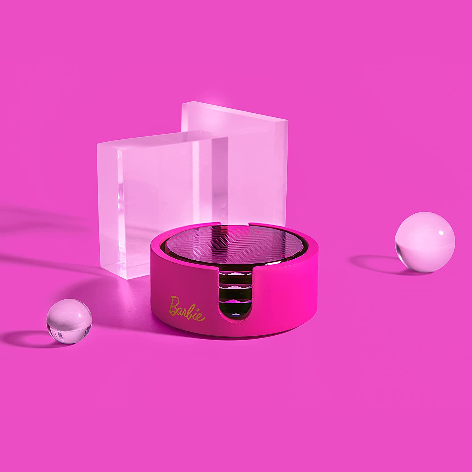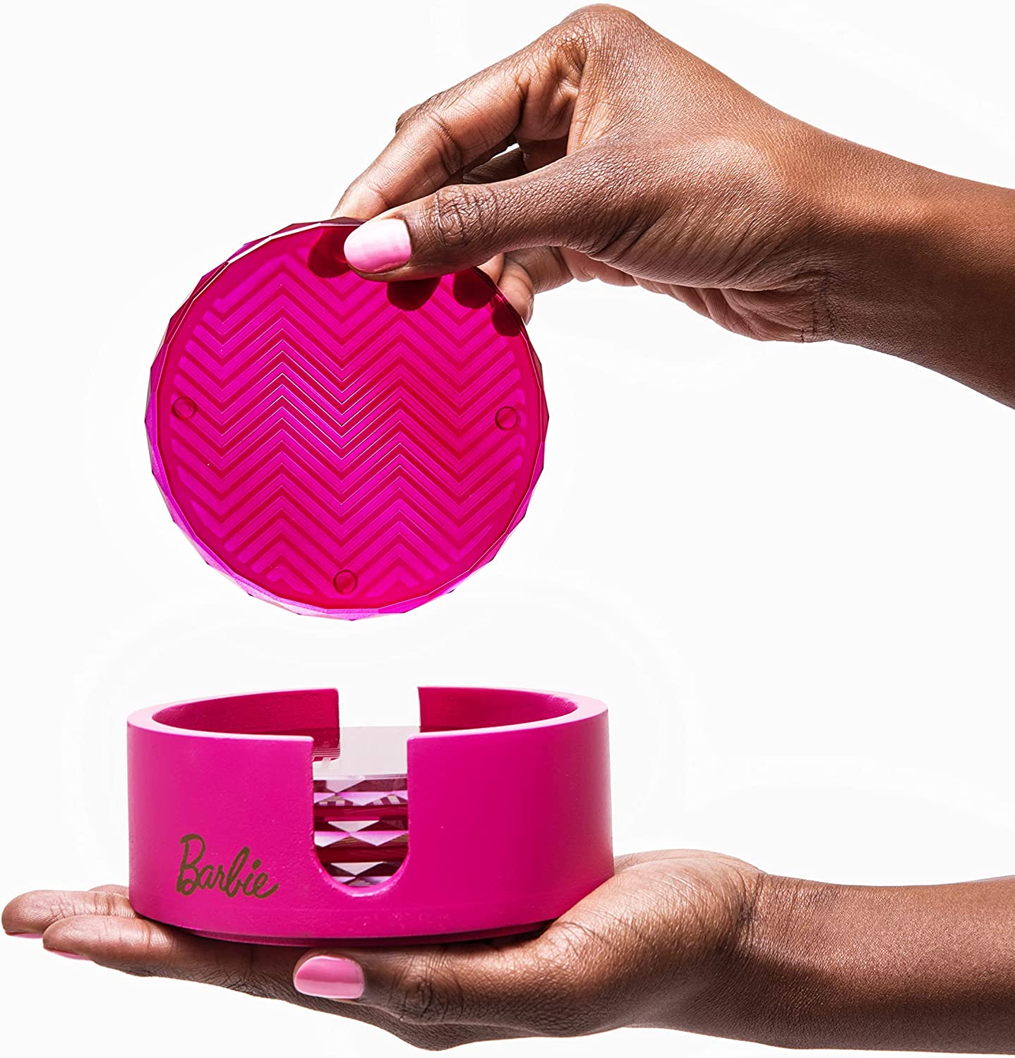 - Juego de posavasos de cristal: estos impresionantes posavasos cuentan con colores y patrones icónicos de Barbie para darte la mejor experiencia Barbie en casa